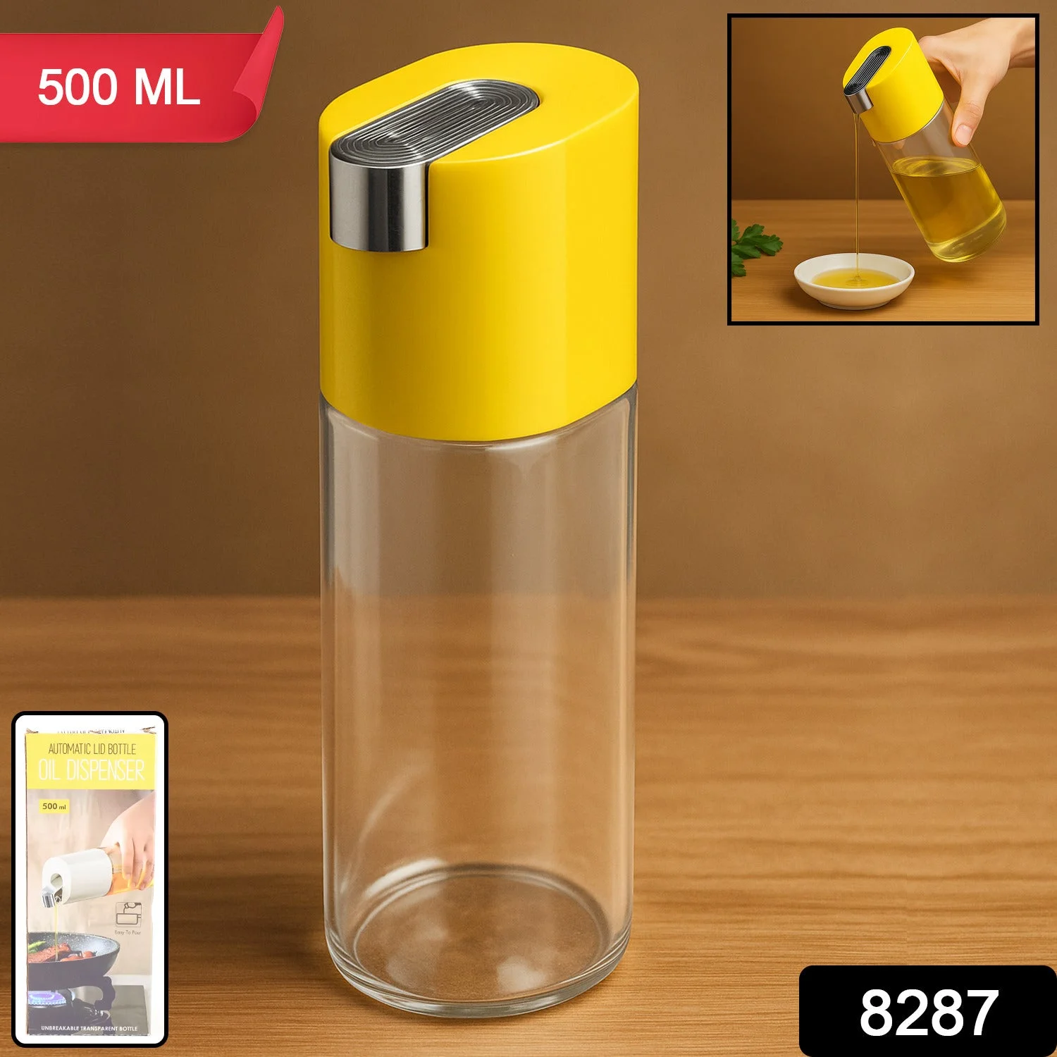 Make cooking more precise, hygienic, and mess-free with this 500 ml Automatic Oil Dispenser Bottle. Designed with a sleek transparent Plastic body and a vibrant yellow airtight lid, this smart kitchen tool features a one-touch pour spout that allows easy and controlled dispensing of oil, vinegar, or other liquid condiments. The ergonomic non-drip design minimizes spills while enhancing your kitchen aesthetics. Ideal for both home cooks and professional kitchens, this bottle promotes healthy oil usage and prevents excess waste, all while keeping your cooking area clean and stylish.