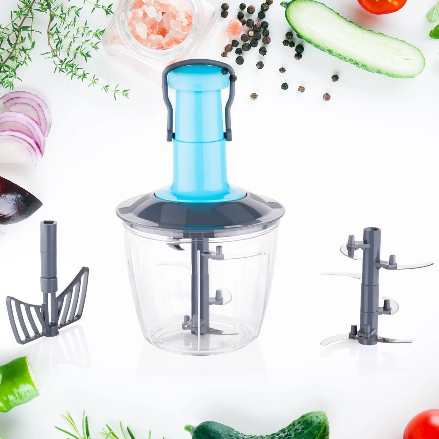 - VEGETABLE CHOPPER: The chopping blades are made of heavy-duty stainless steel that won’t bend or rust, sharp, rustproof, and corrosion-resistant, cut potatoes, tomatoes, cucumbers, carrots easily.