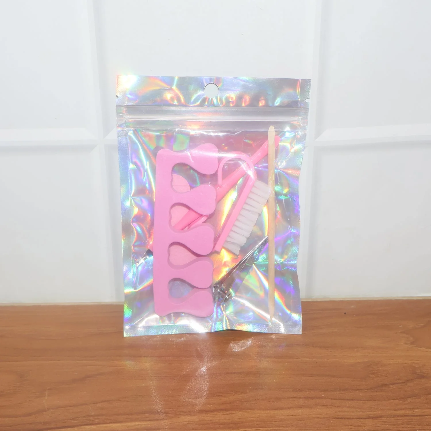 Set Includes: Nail cutter, toe separator, nail file, cuticle tool, cleaning brush, precision stick