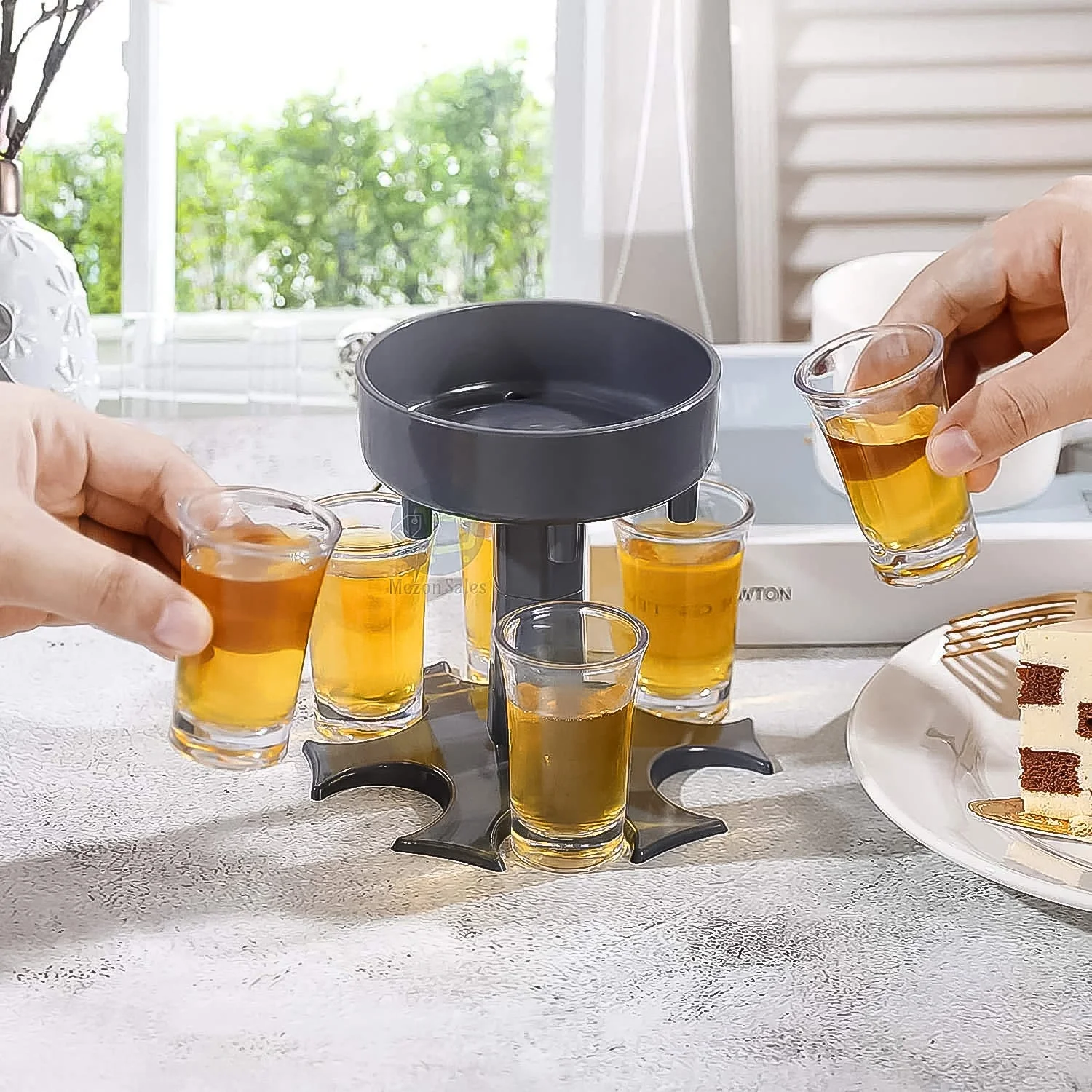 Make your parties more efficient and fun with this 6-Port Drink Dispenser Stand, designed to pour liquid evenly into 6 shot glasses at once. Crafted from durable plastic, this shot dispenser provides a quick, clean, and hands-free way to fill multiple cups. Ideal for home bars, parties, gatherings, and celebrations, it reduces mess and ensures consistency. Simply place your glasses under the outlets, pour the liquid in the top, and watch the drink divide equally. Please note: glasses are not included in this set.