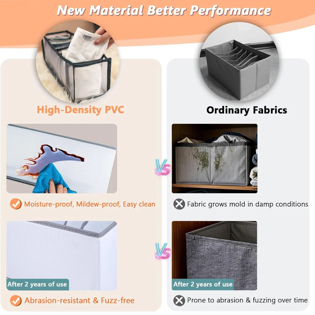 - Suitable for storing leggings, jeans, T-shirts, skirts, underwear, socks, scarves, etc. Stored in compartments is greatly improve the utilization rate of the wardrobe space.