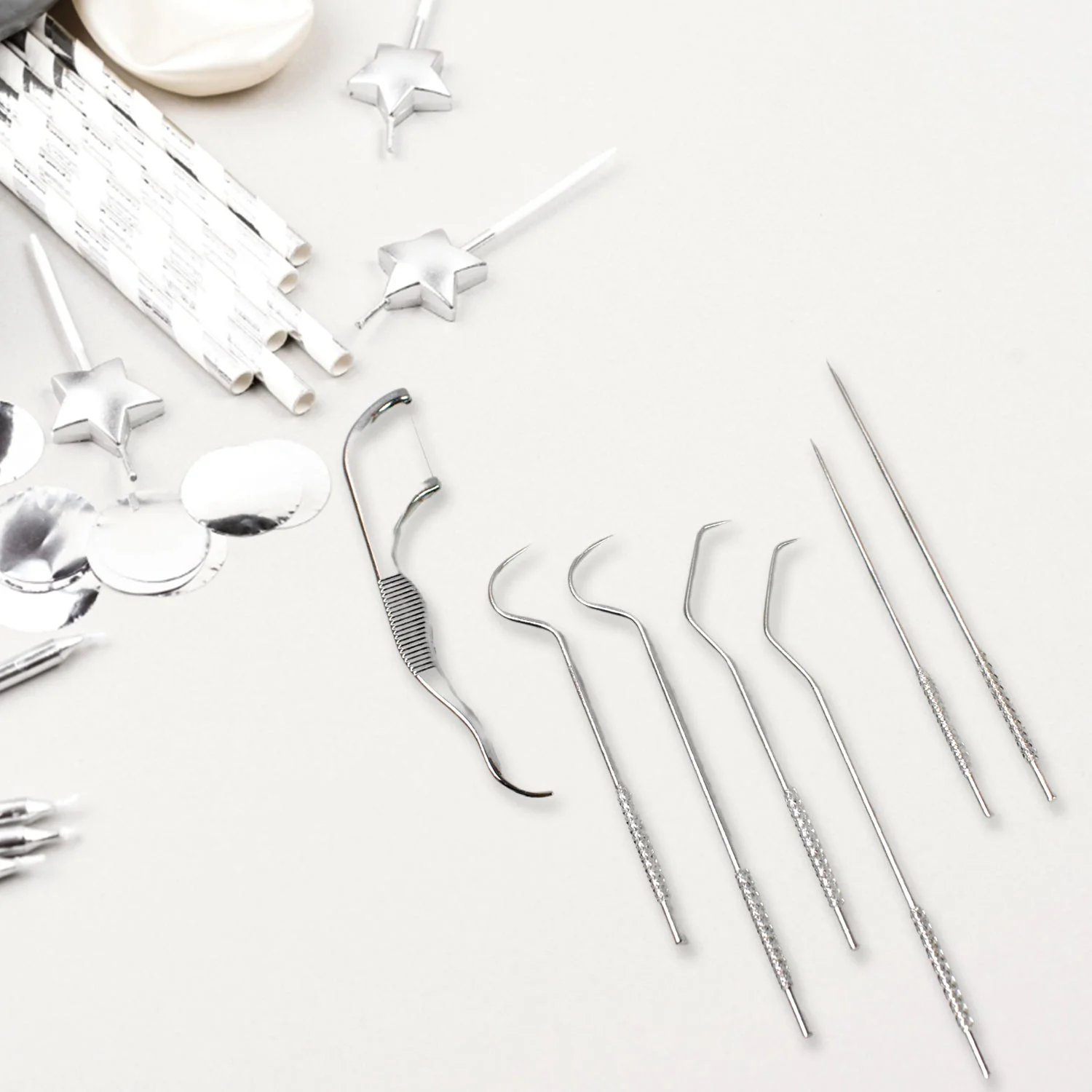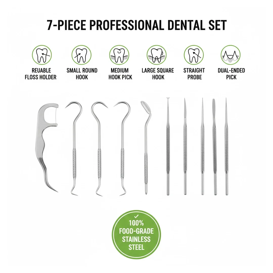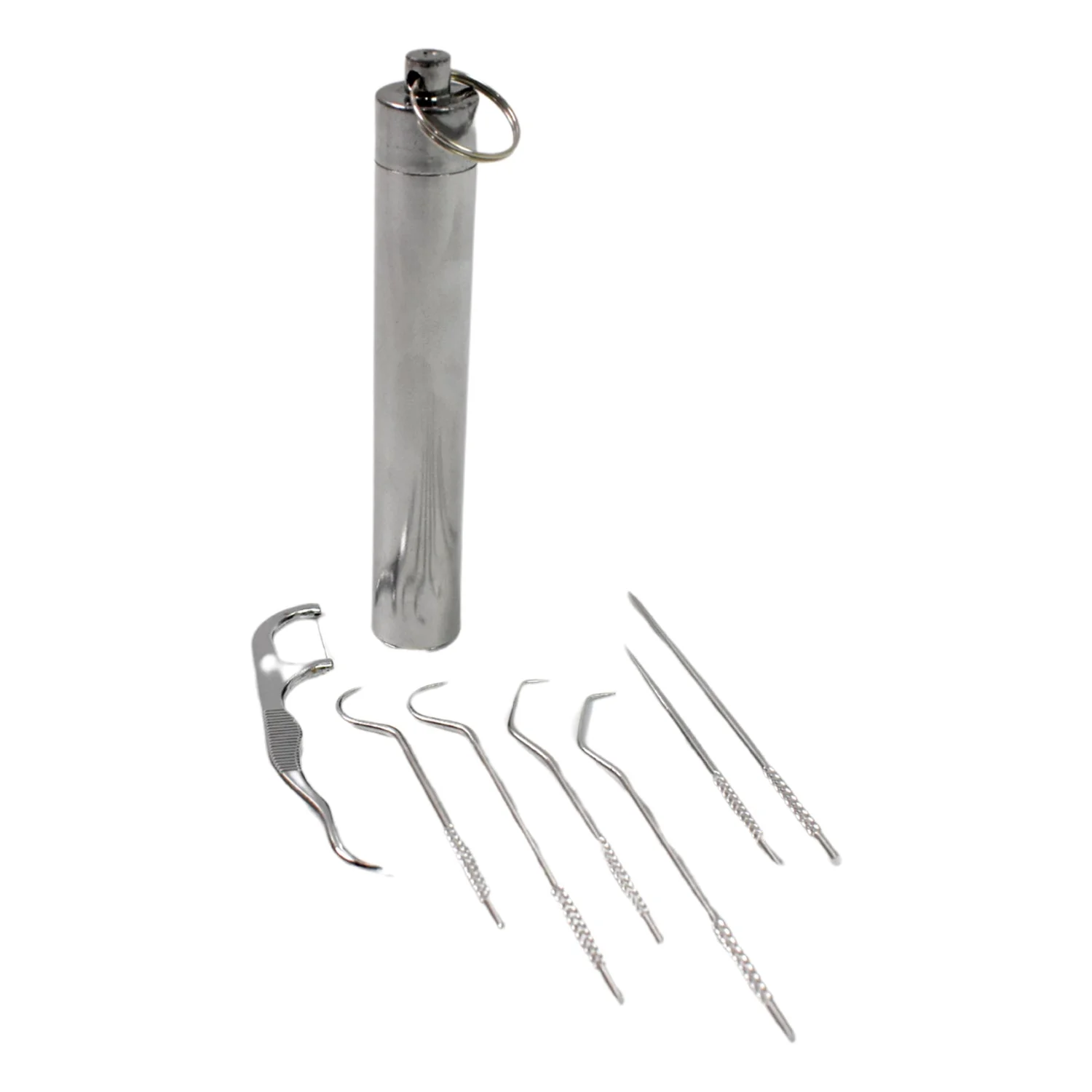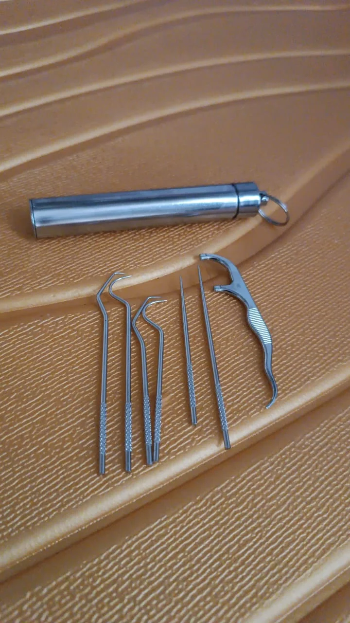 7 IN 1 STAINLESS STEEL TOOTHPICK FLOSSIER SET (1 SET / With Case)