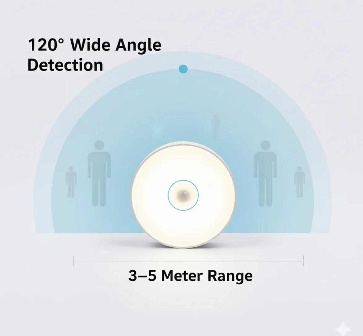 4. Human sensor: In the dark environment, when the human body enters the sensing range of 3m, the light is on and automatically turns off after leaving for 20s; The bright environment small night light will automatically enter the sleep state.