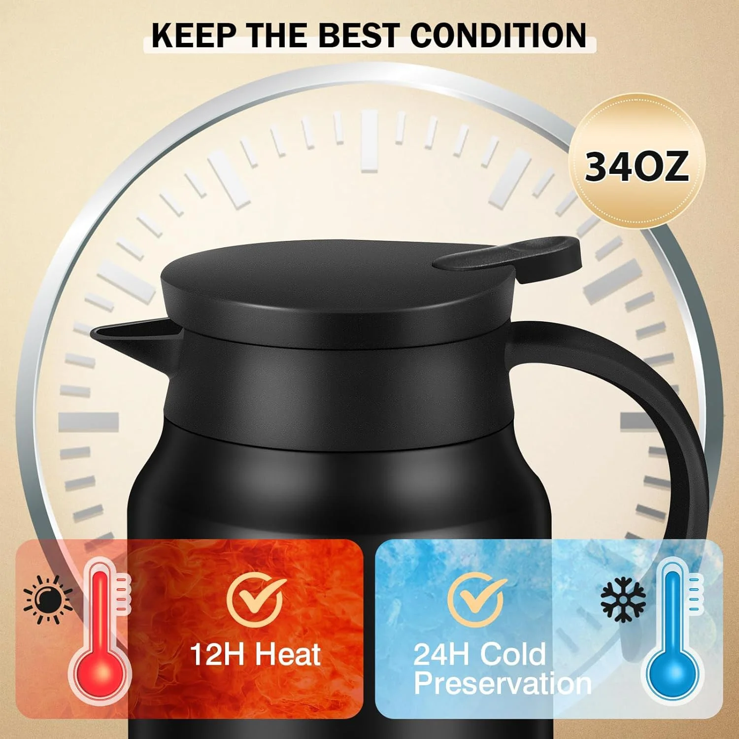800 ML Insulated Thermos Flask with Handle and Strap Stainless Steel Inner Hot & Cold Beverage Bottle Travel Coffee Tea Serving Jug 1 Pc