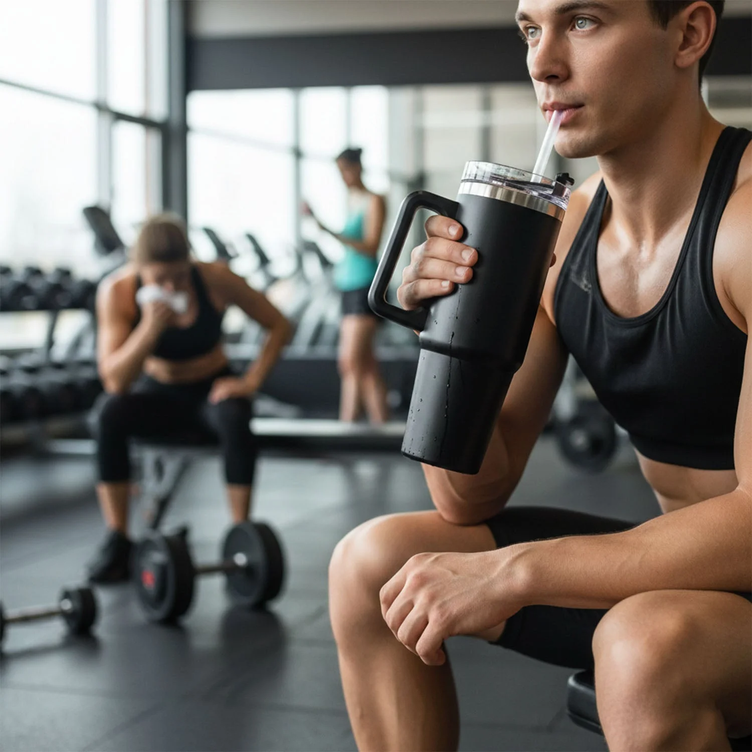This large-capacity insulated travel mug is designed for people who enjoy their beverages at the right temperature throughout the day. Its tall, ergonomic shape with a sturdy handle offers a comfortable grip, making it easy to carry from desk to car or café. The secure lid helps reduce spills while allowing convenient sipping using the straw or direct opening. Suitable for both hot and cold drinks, this mug fits well into daily routines at home, office, or while commuting. Its sleek and modern appearance complements both professional and casual environments.