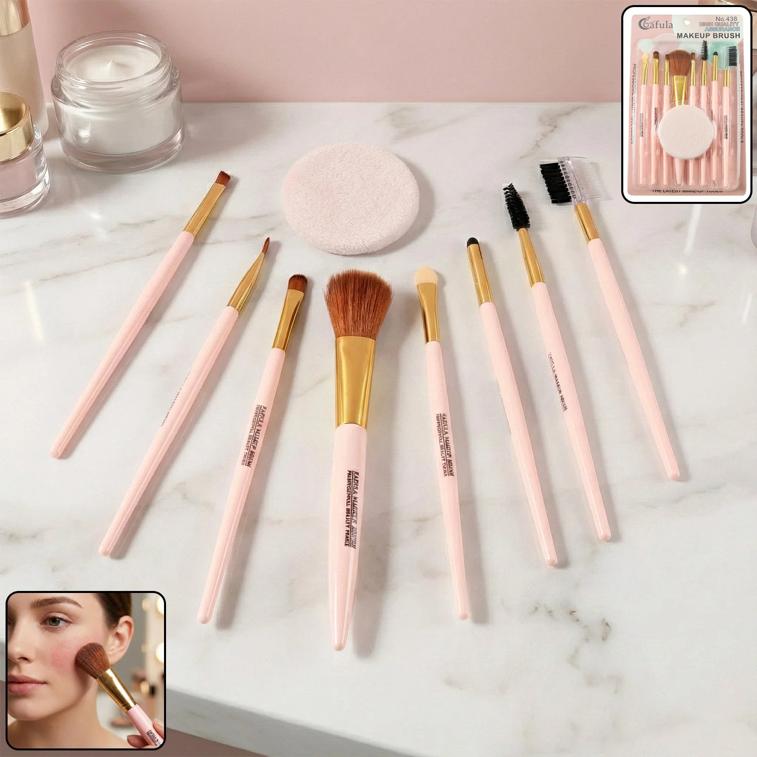 9-in-1 professional makeup brush set, complete makeup brush kit, face puff included, blush brush, foundation brush, eye makeup brush, eyebrow brush, eyelash brush, daily makeup brush set, beginner makeup brush kit, beauty professional brush set, cosmetic brush set, multipurpose makeup brushes