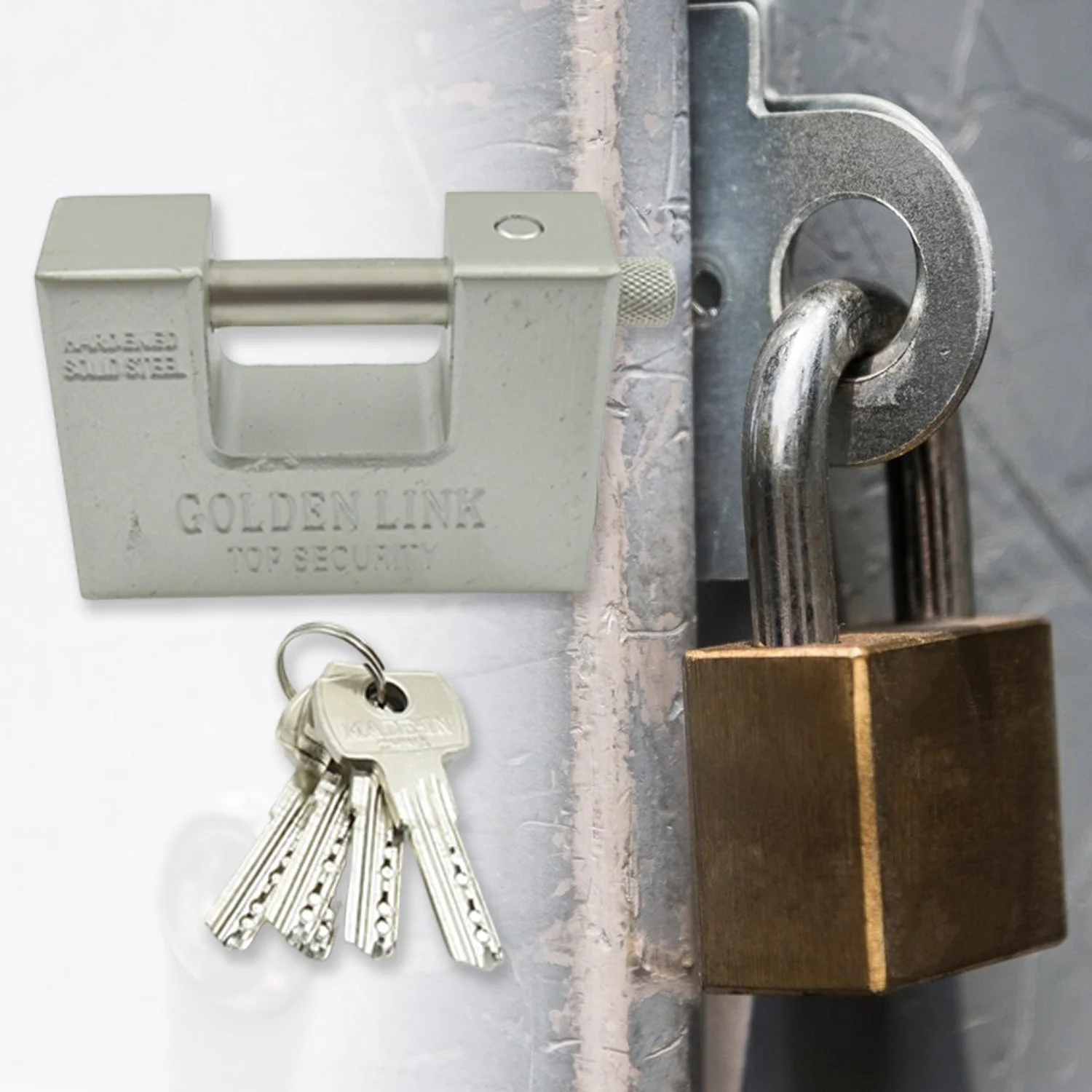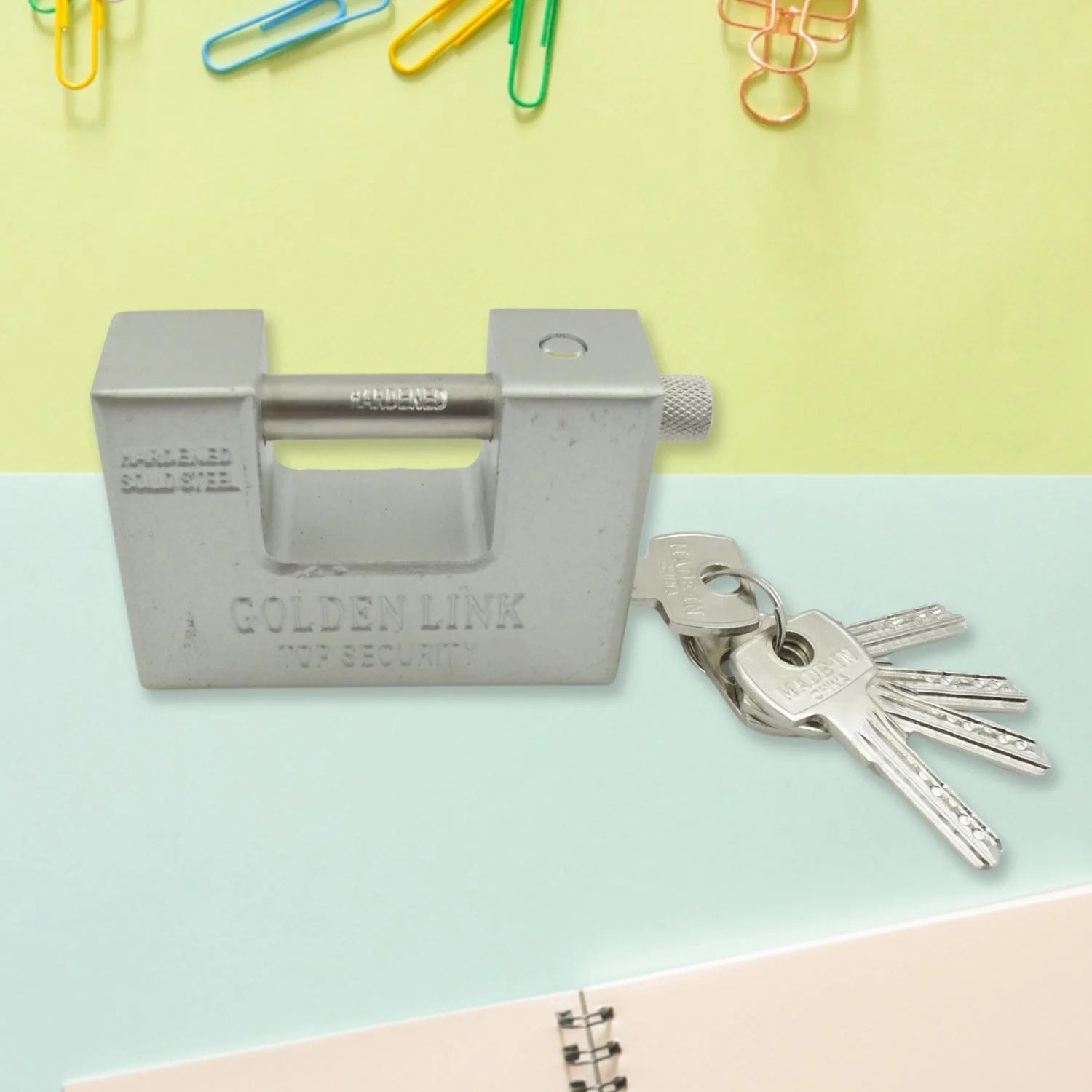 9323 Stainless Steel Padlock | Rectangular Shape | Hardened Steel | High Resistance With 5 Keys, Door Lock for Home Dormitory, Waterproof Antirust Anti-theft Padlocks Outdoor Gate Shed Locks Warehouse Big Door Drawer Lock (94 MM)