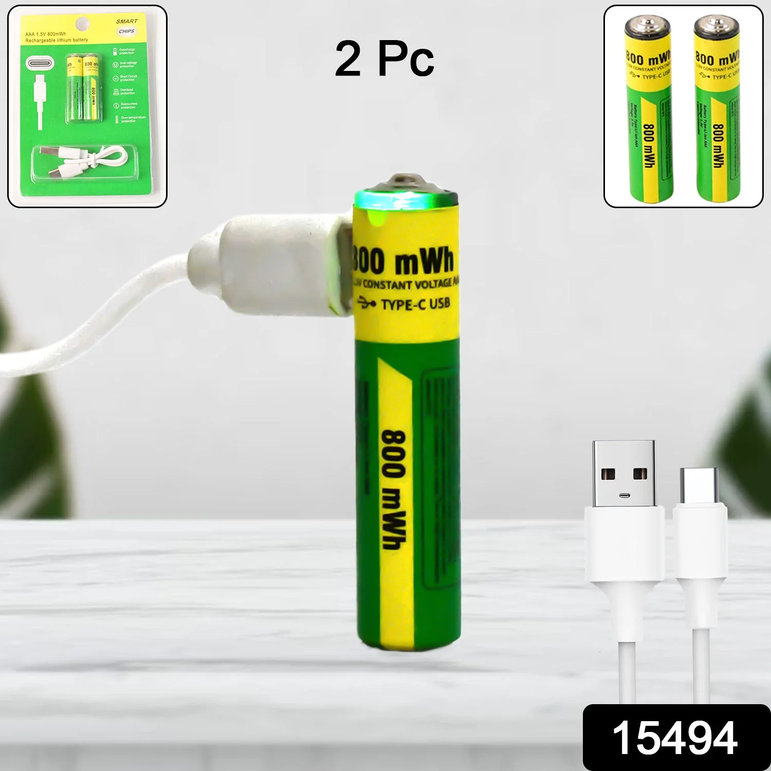 AAA 800 mWh Rechargeable Batteries, Double A High Capacity 1.5V Pre-Charged for Garden Landscaping Solar Lights, String Lights, Remotes, Wireless Mouses, Radio, (Combo Of 2 Batteries With Cable)