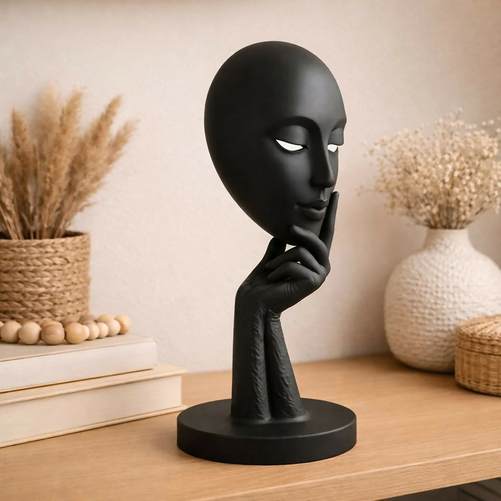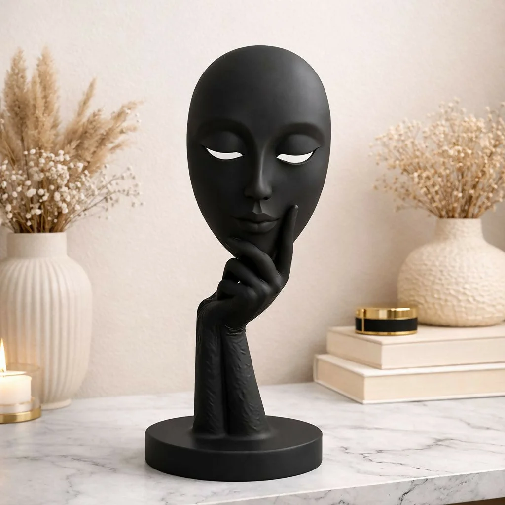 Add a bold artistic touch to your space with this elegant abstract face showpiece. Featuring a sleek and modern design with a thoughtful expression, this decorative statue enhances the aesthetic appeal of any room. The smooth matte finish and minimal detailing make it perfect for contemporary interiors. Ideal for living rooms, bedrooms, office desks, or shelves, this piece serves as a statement décor item and a unique gift option.