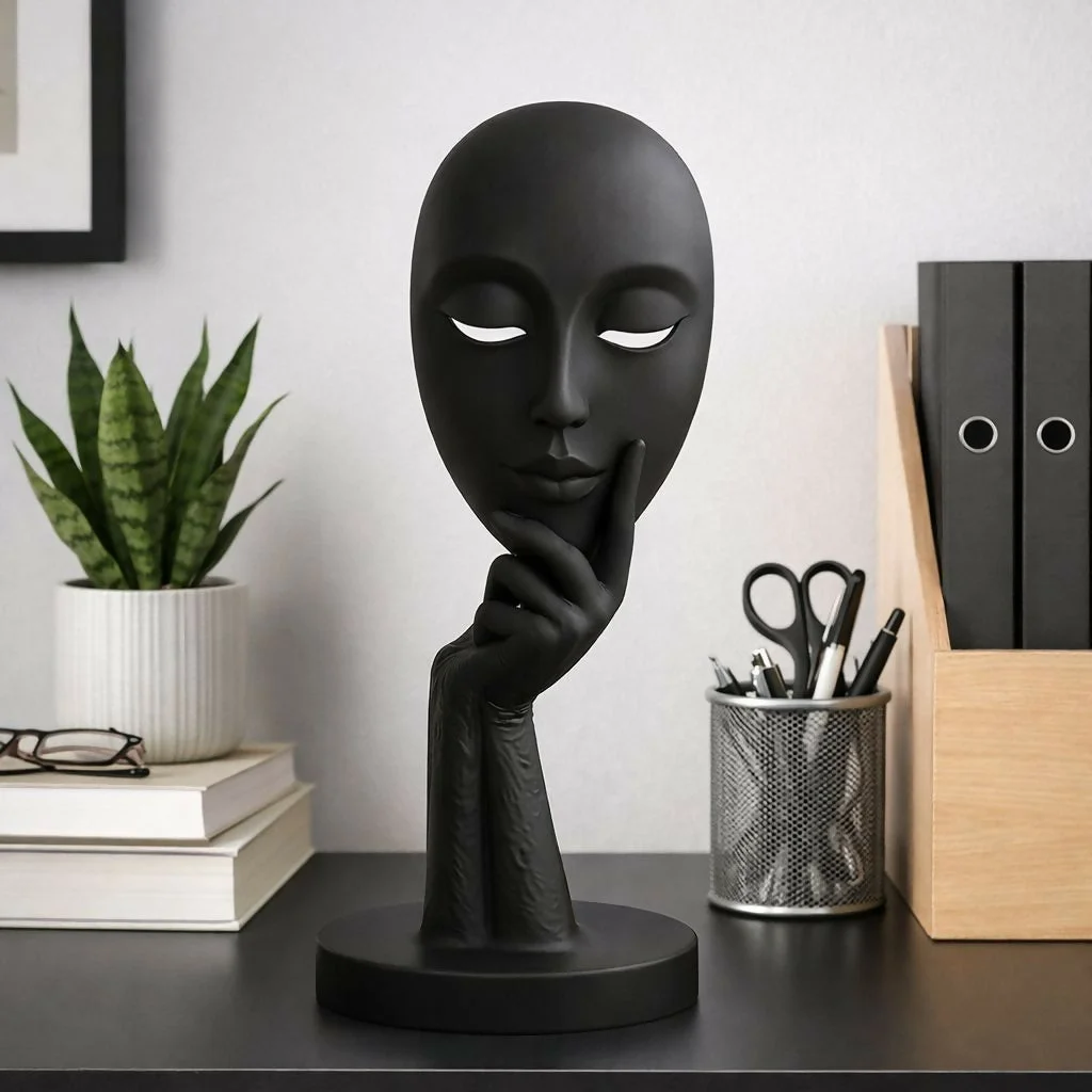 abstract face showpiece, modern decor statue, home decor figurine, artistic sculpture, table decor items, living room decor, office desk decor, decorative statue, minimalist decor, gift item for home