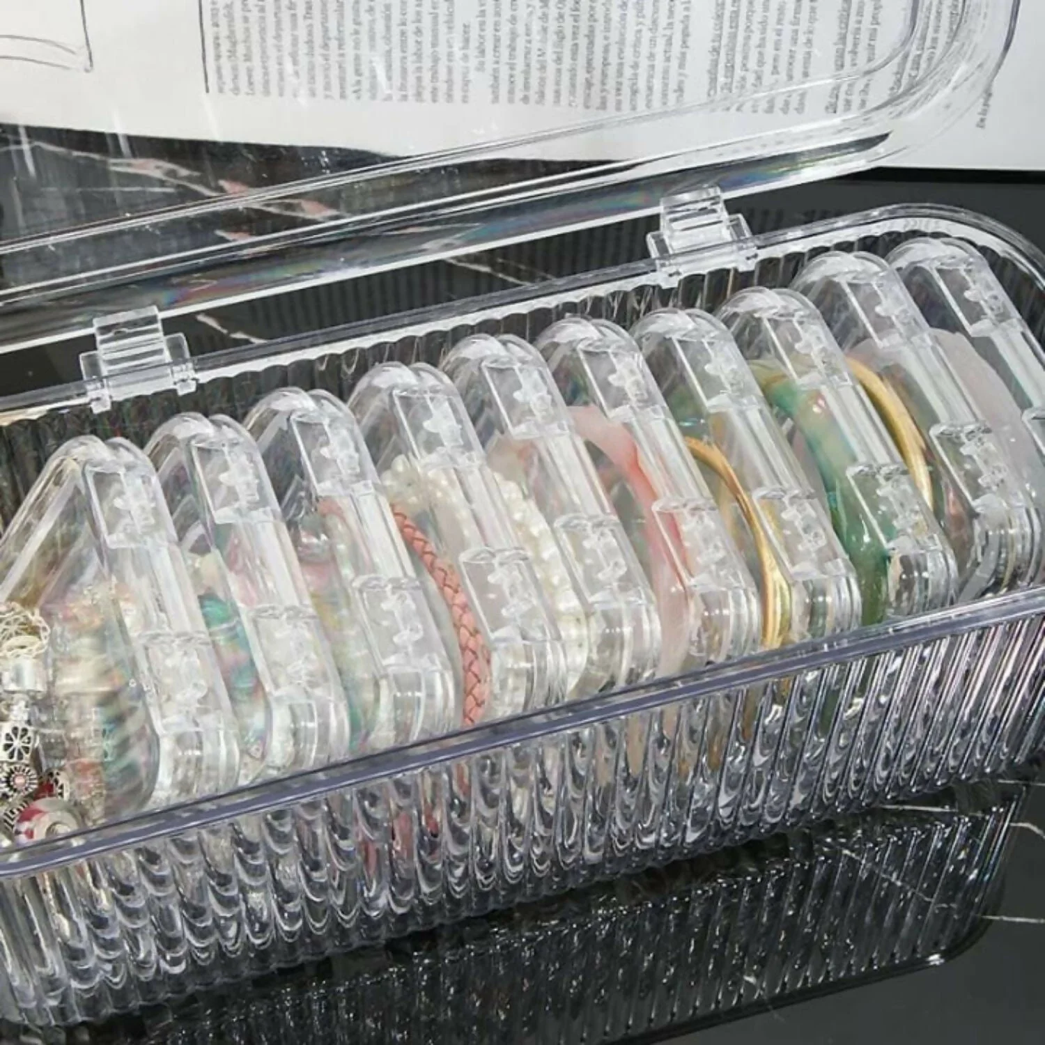 Crystal-clear design for quick visibility and elegant display of jewellery and accessories
