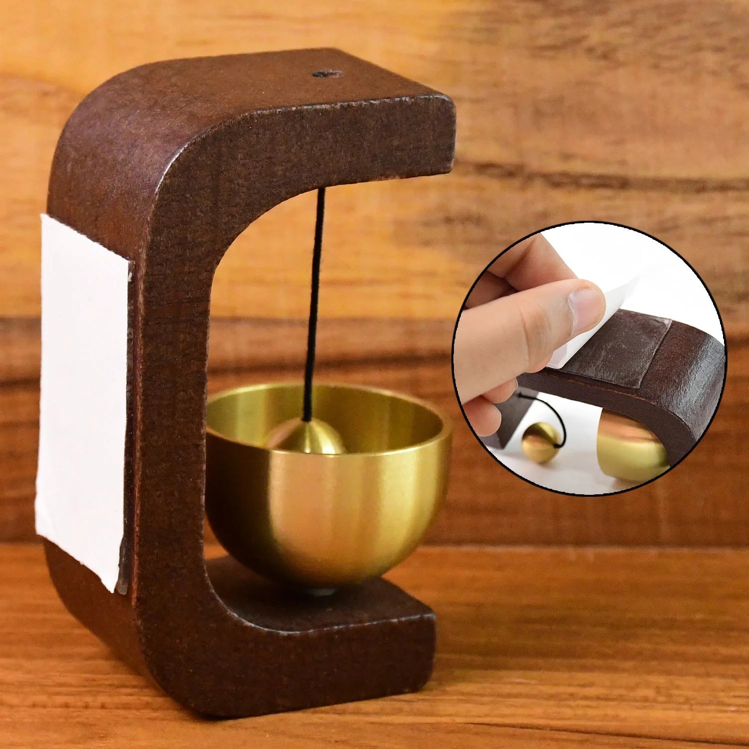 Adhesive Premium Desktop Japanese-Style Zen Bell for Meditation and Mindfulness – Adhesive Wooden Stand with Brass Chime Ball (Without Magnetic)