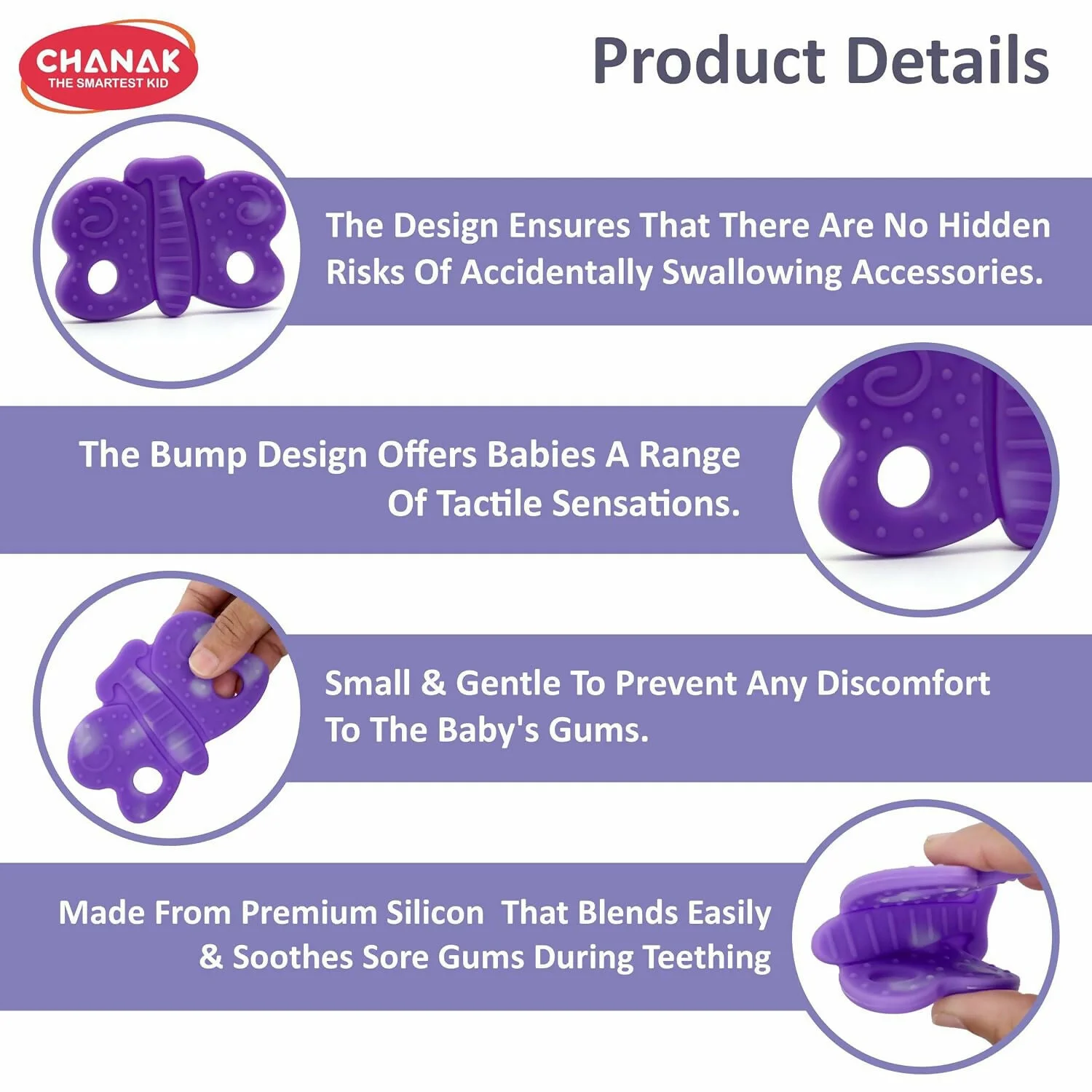 The Aditi Baby Butterfly Silicone Teething Toy is designed to provide gentle relief for babies during the teething stage. Its butterfly-shaped design is easy for little hands to hold, allowing babies to comfortably chew and explore different textured surfaces. The soft and flexible construction helps soothe sore gums while supporting sensory development and oral stimulation. Multiple textured patterns on the teether help massage gums and keep babies engaged during playtime. The lightweight design makes it easy to carry and suitable for everyday use at home or while traveling. This teething toy helps encourage early motor skills while providing a safe and enjoyable teething experience for infants.