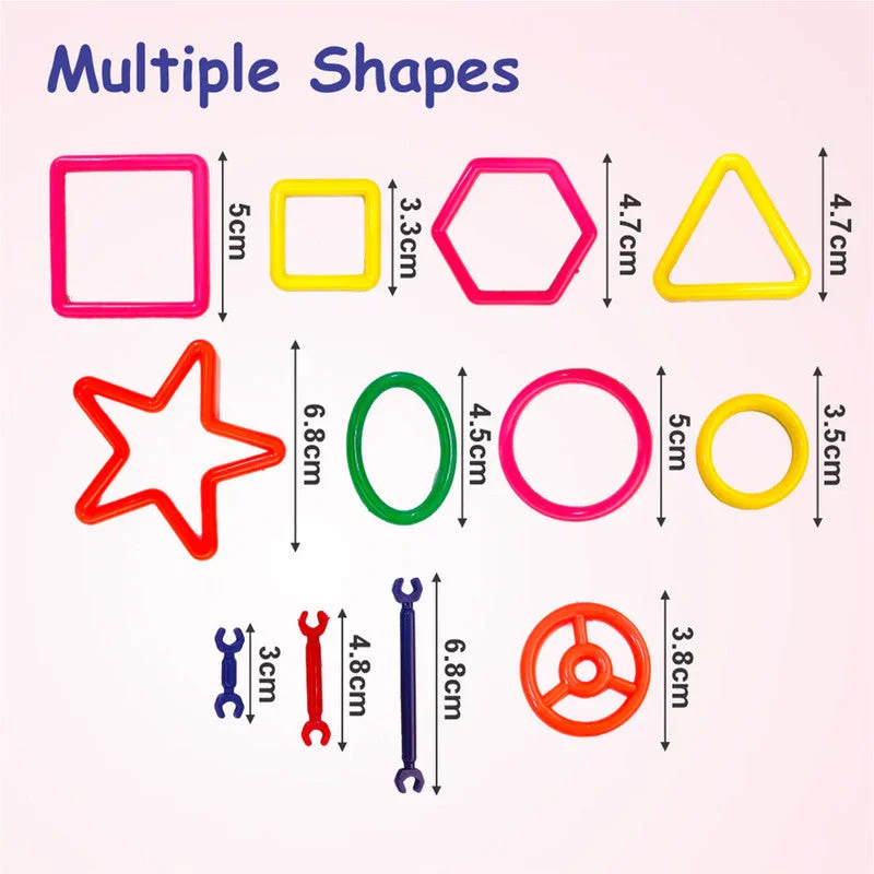 This Aditi creative building set includes colourful sticks and shape rings that kids can connect to build chairs, stars, vehicles, and countless imaginative structures. The smooth, child-friendly connectors allow easy linking, helping children develop creativity, problem-solving skills, and hand–eye coordination. Its flexible design encourages open-ended play, letting kids experiment freely with shapes and patterns. Ideal for both solo and group activities, it keeps children engaged in fun learning for hours.