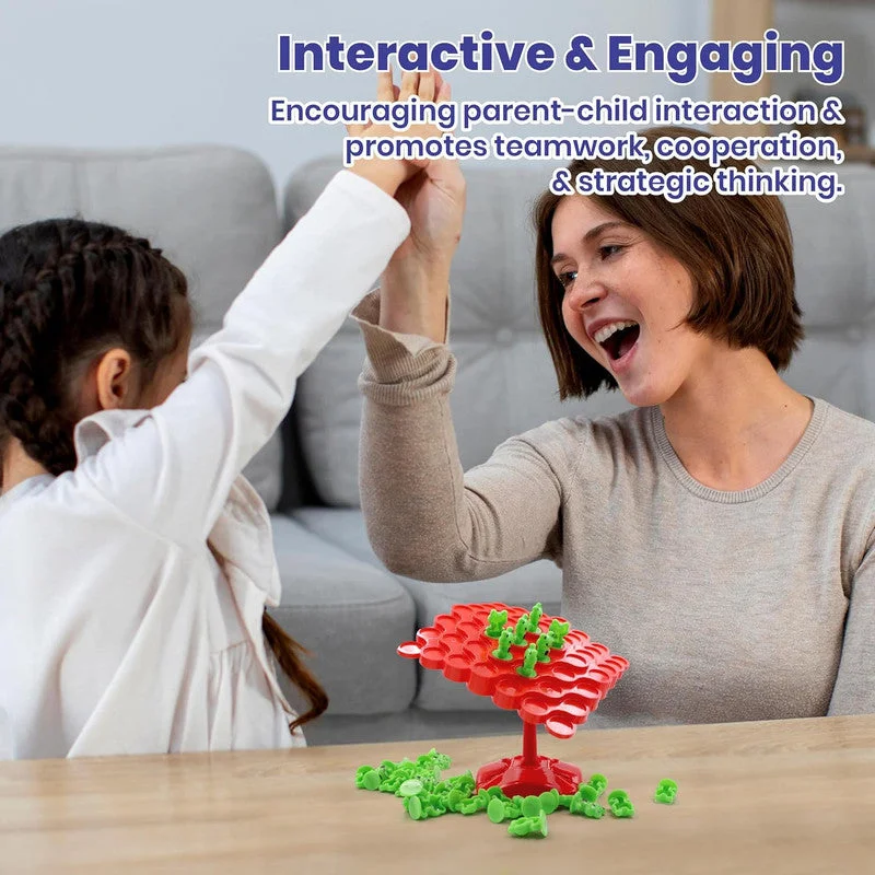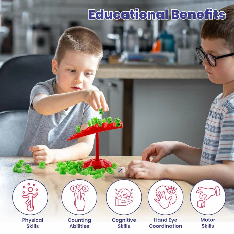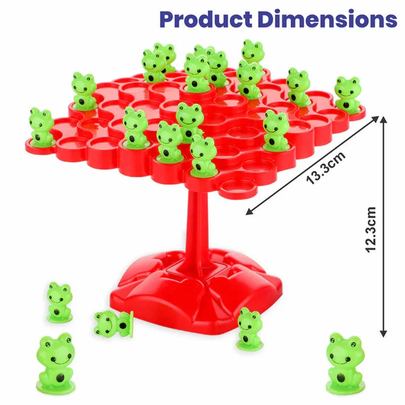 This exciting Froggy Wobble game challenges kids to carefully stack cute frog pieces on a wobbly tree platform without tipping it over. The bright red base and lightweight frogs make the game visually engaging and easy to grip. It promotes balance, hand–eye coordination, counting, and strategic thinking as children take turns placing frogs one by one. Perfect for family playtime, classroom activities, and developing patience through fun-filled competition.
