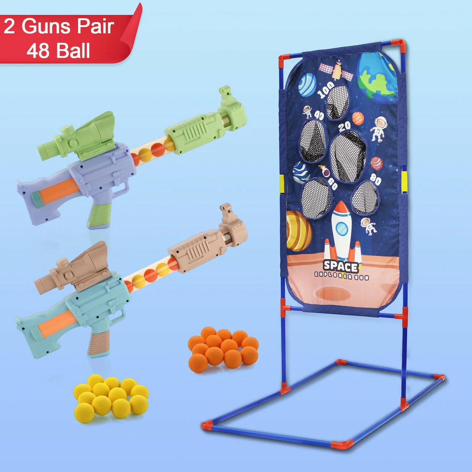 Be the first to review Aditi Space Explorer Pack Of 2 Pneumatic Gun Toy Stand Include 24 Soft Foam Ball!