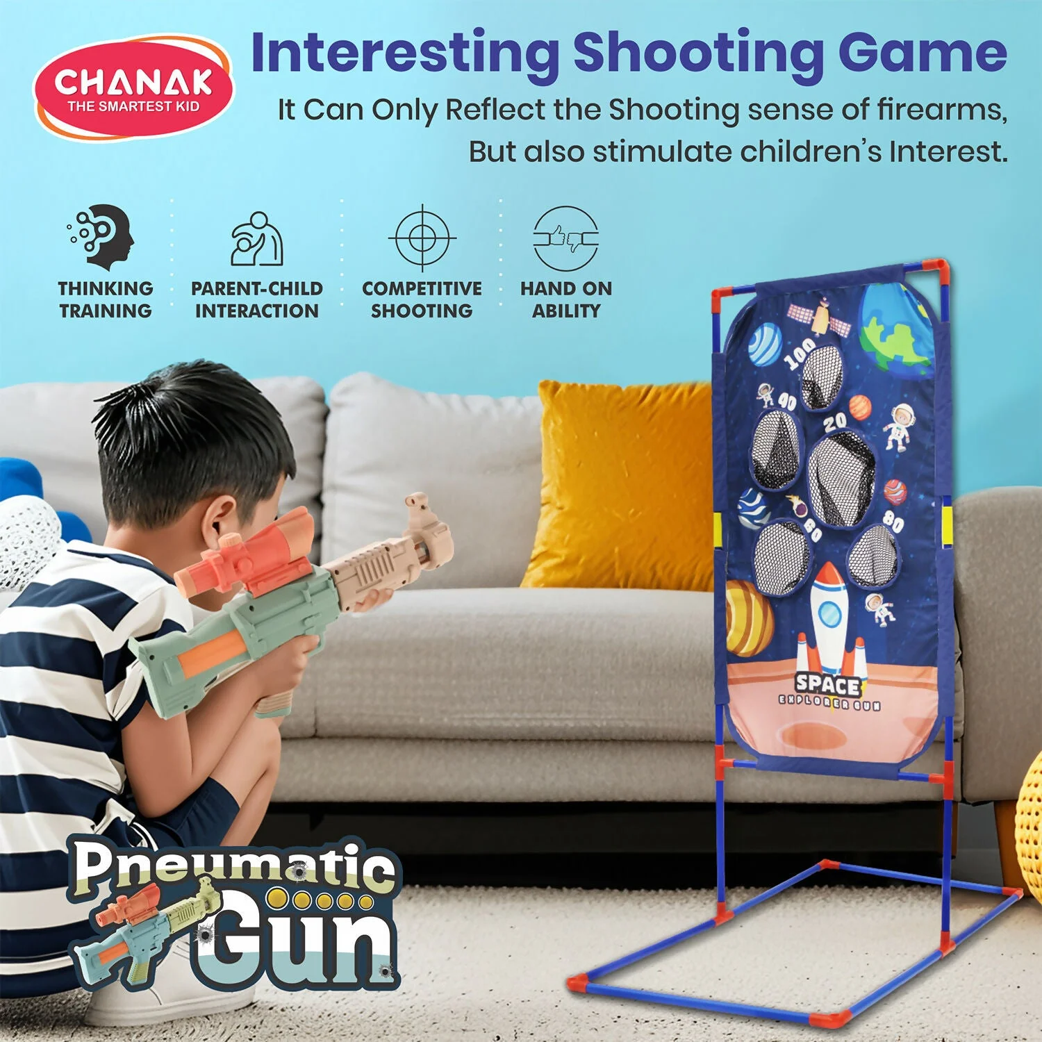 Chanak Space Explorer Pneumatic Gun Set is designed to deliver safe, exciting, and skill-building play for kids. Crafted from premium ABS plastic, this toy gun set is durable, lightweight, and completely child-safe. The included soft foam balls ensure worry-free play while allowing kids to enjoy realistic shooting action.