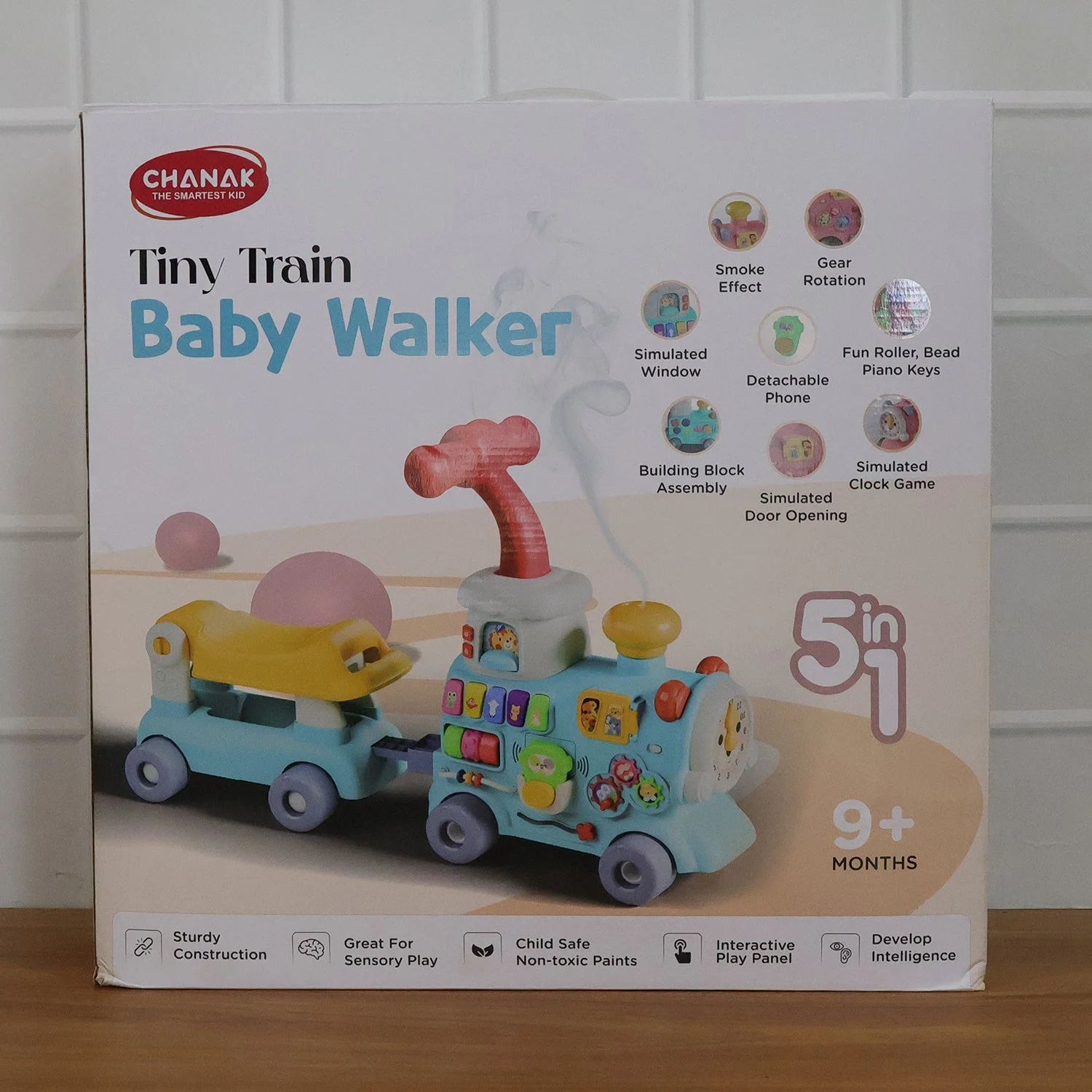 • Cute train shaped baby walker with colorful activity panel