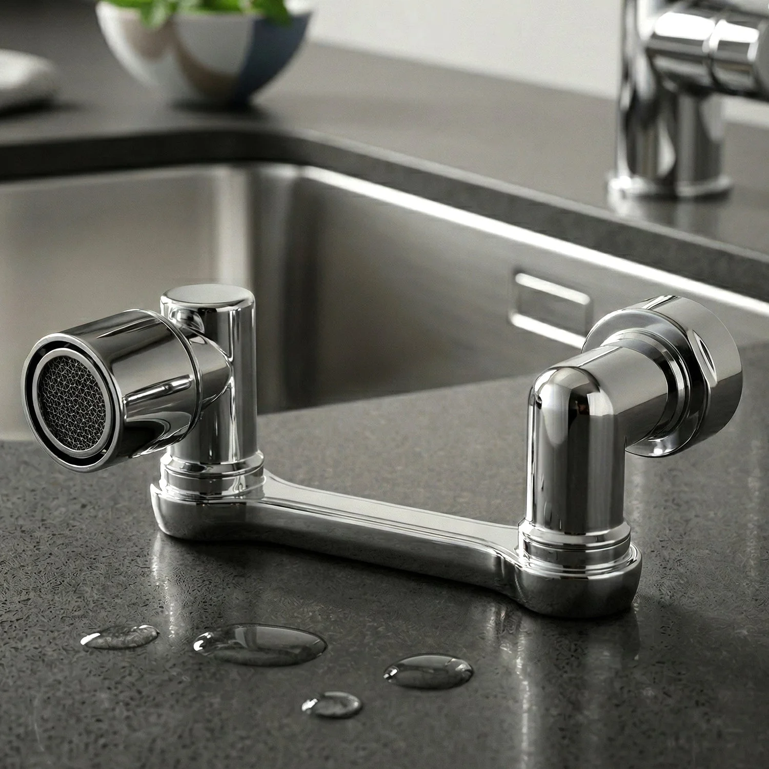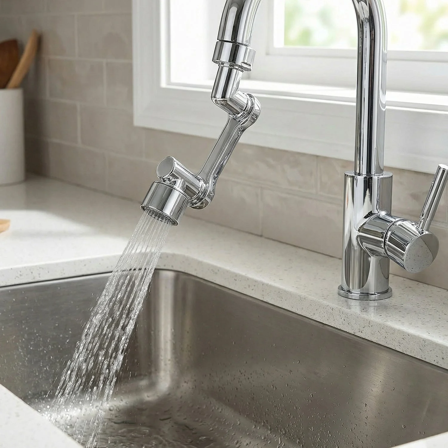 This water saving faucet attachment India helps reduce splashing while increasing efficiency. Its rotating feature ensures better reach, making it perfect for kitchen and wash basin use, while also adding convenience to daily cleaning tasks.