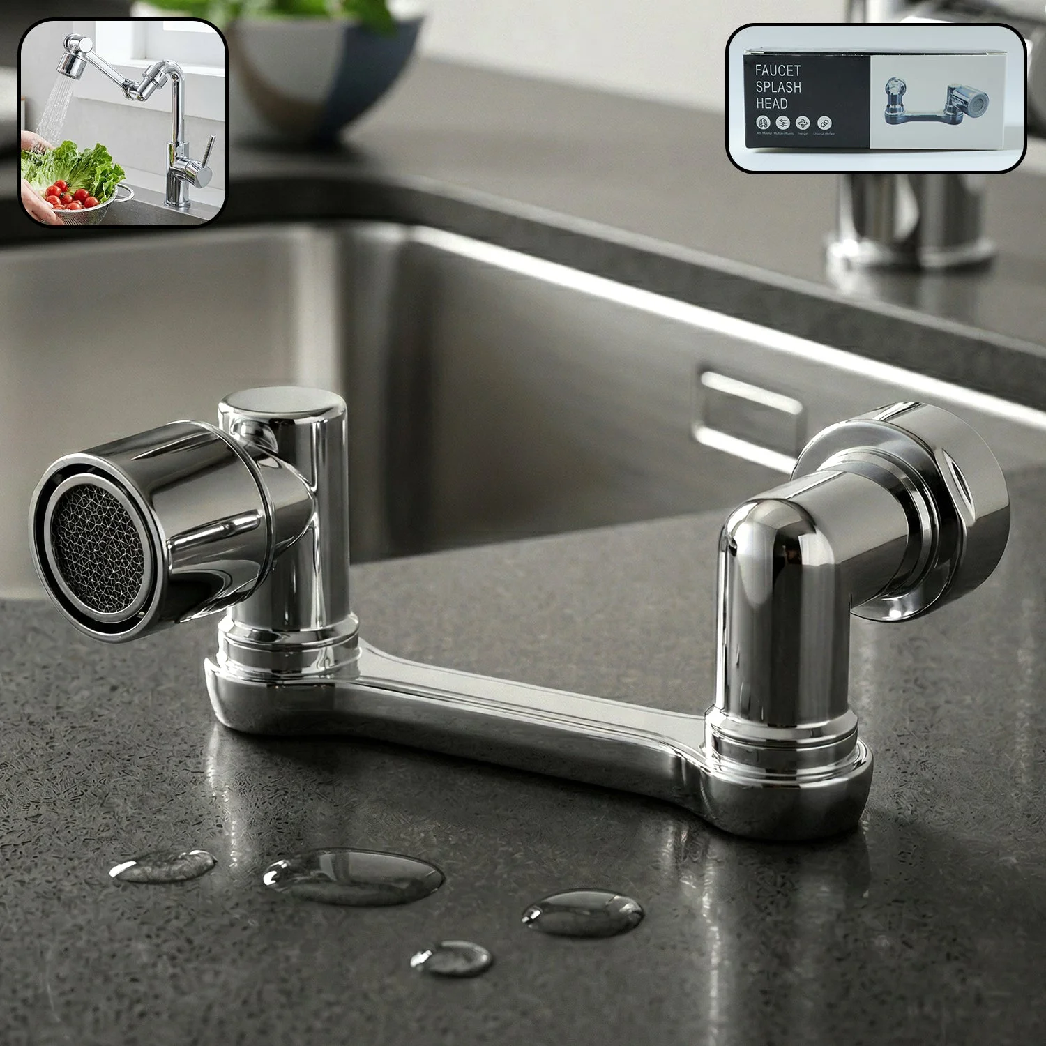 Adjustable 360° Rotating Faucet Splash Head Tap Extender 1 Set – Multi-Function Kitchen Sink Water Saver Sprayer for Flexible Cleaning & Easy Washing