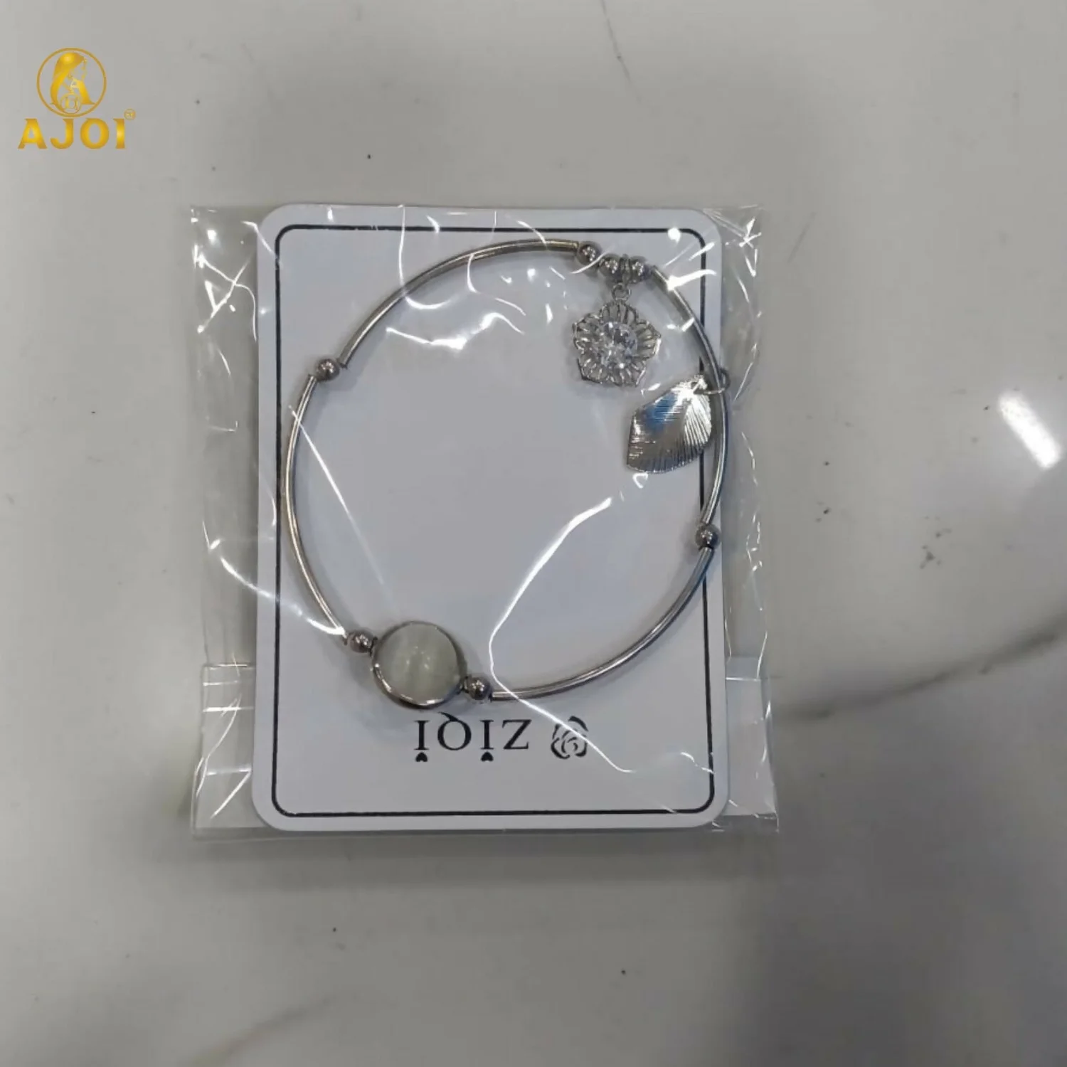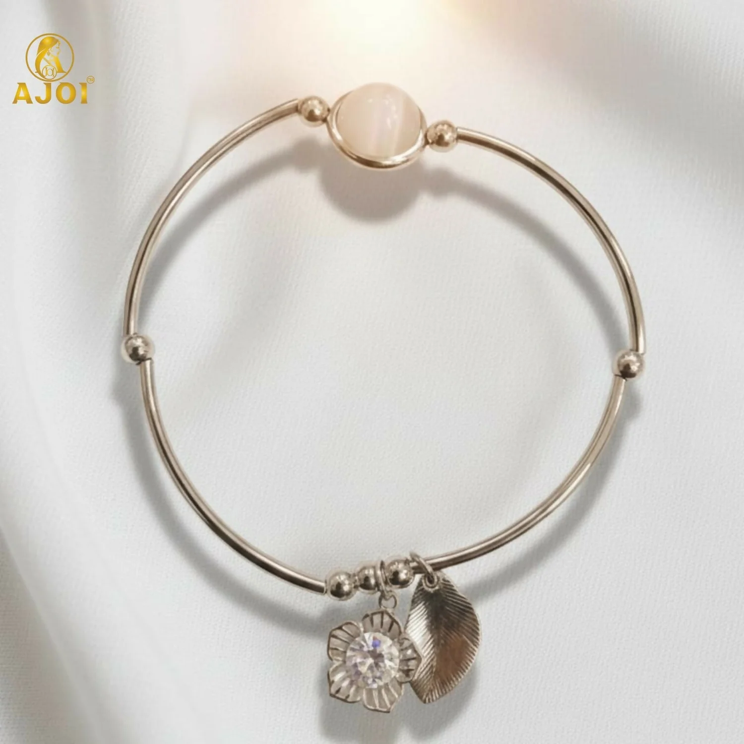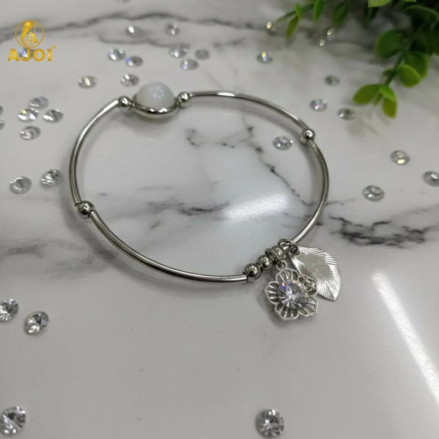 Crystal & leaf charm detailing