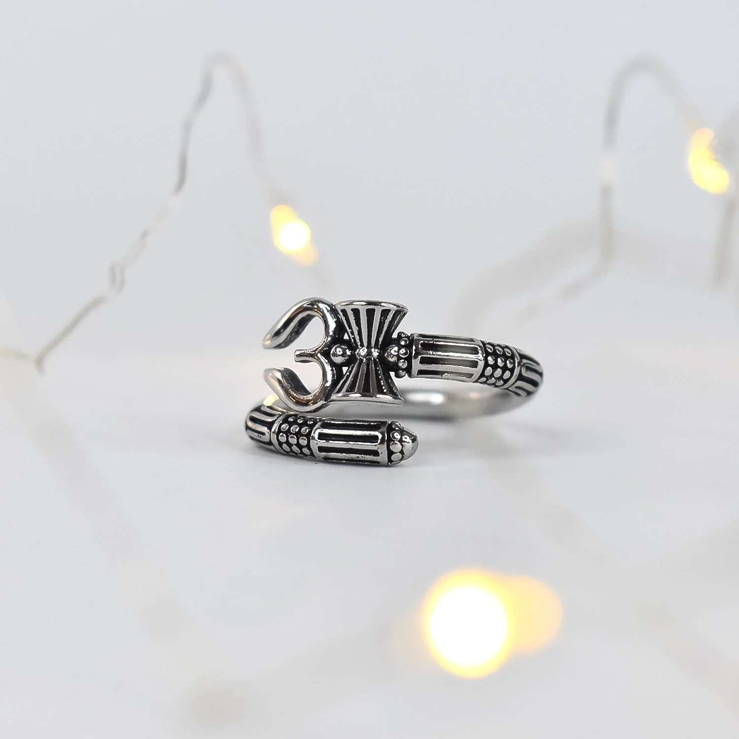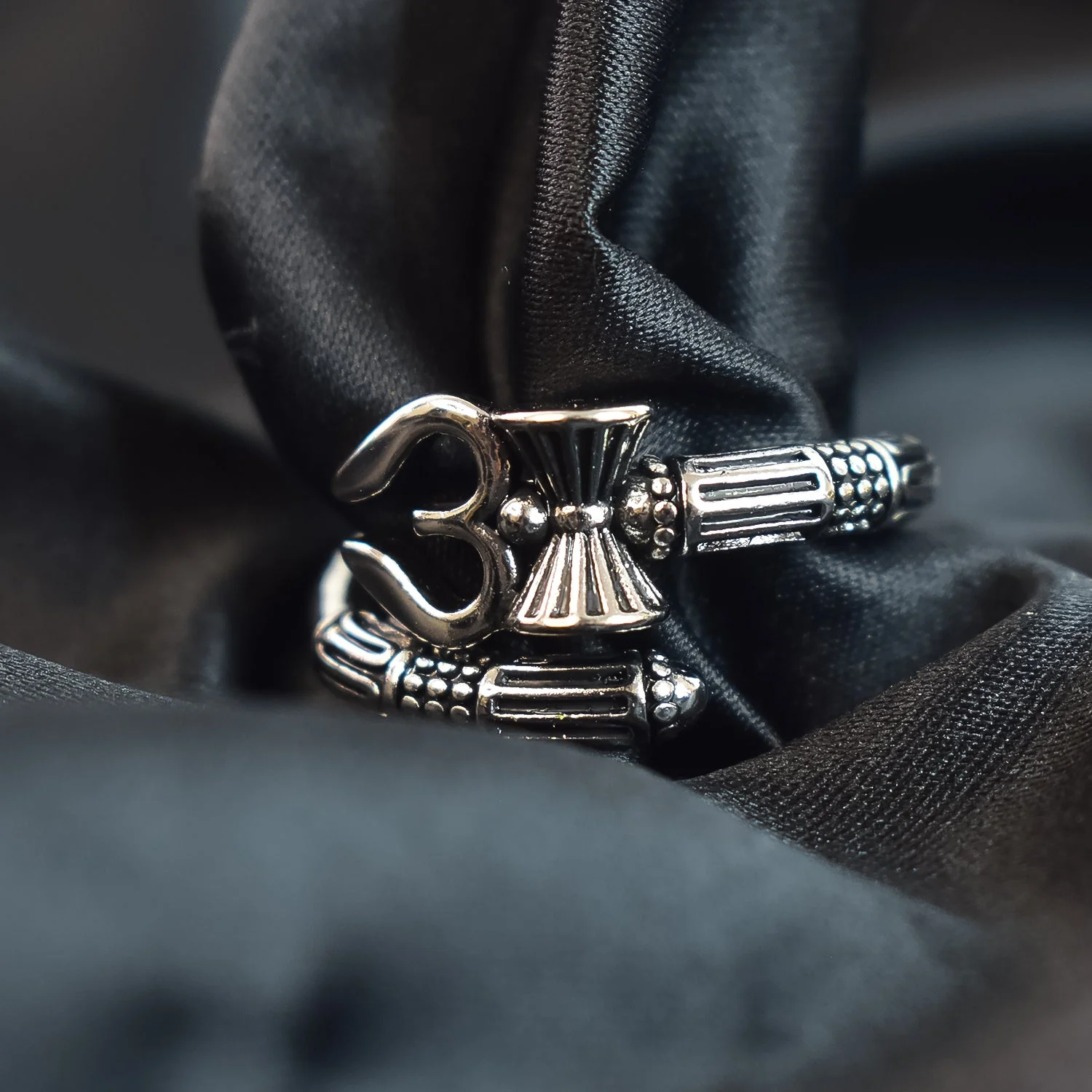 Adjustable Stylish Trending Mahakal Shiva Trishul Damroo Designer Bahubali Cuff Finger Ring