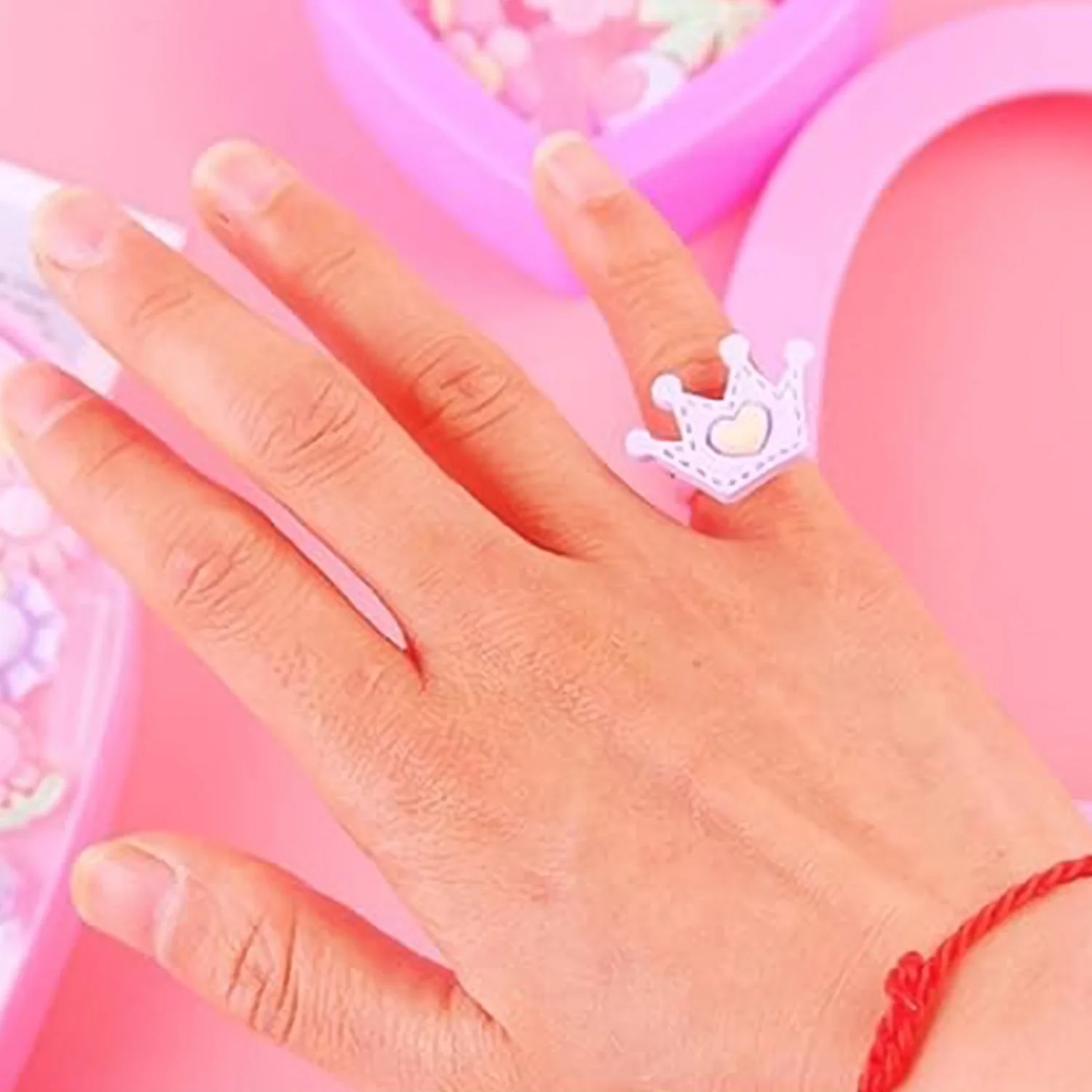 Adorable Assorted Decorative Rings for Children - Playful Finger Accessories in Heart-Shaped Storage Box