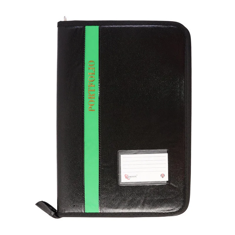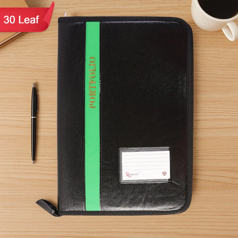 The Aerotix A4 Portfolio File is a smart and professional document organizer designed for everyday office, academic, and professional use. With a durable leather-textured cover and secure zip closure, it keeps your papers neatly arranged and protected. This 30-leaf display file offers transparent inner pockets for easy viewing and quick access to your documents. The inner compartments are thoughtfully designed for pens, cards, and small notes, making it ideal for meetings, presentations, and interviews.