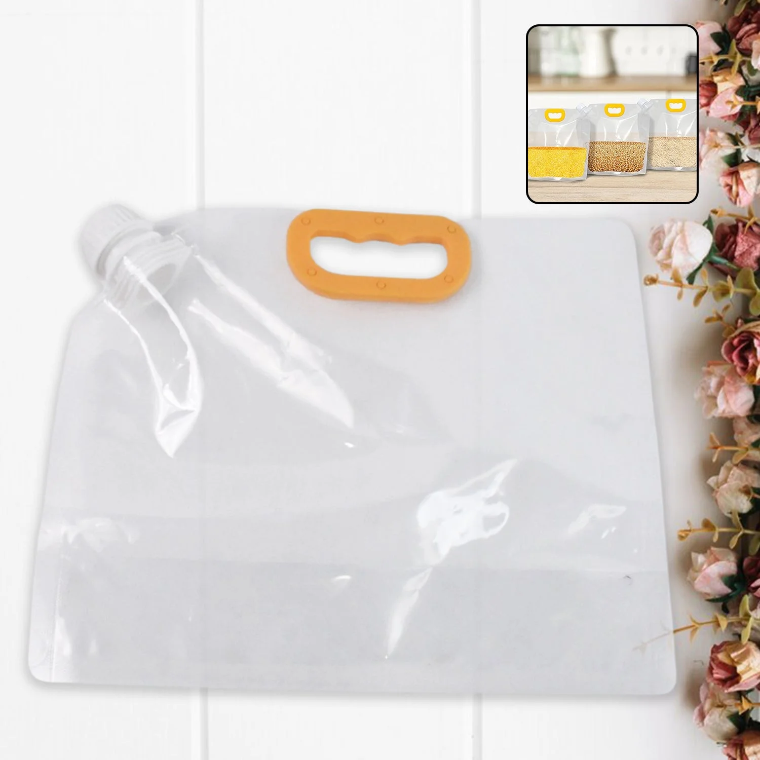 liquid storage pouch, refillable spout bag,reusable beverage container, foldable drink pouch, fluid transport bag,spout pouch with handle, transparent liquid carrier, portable drink bag, handle grip liquid pouch