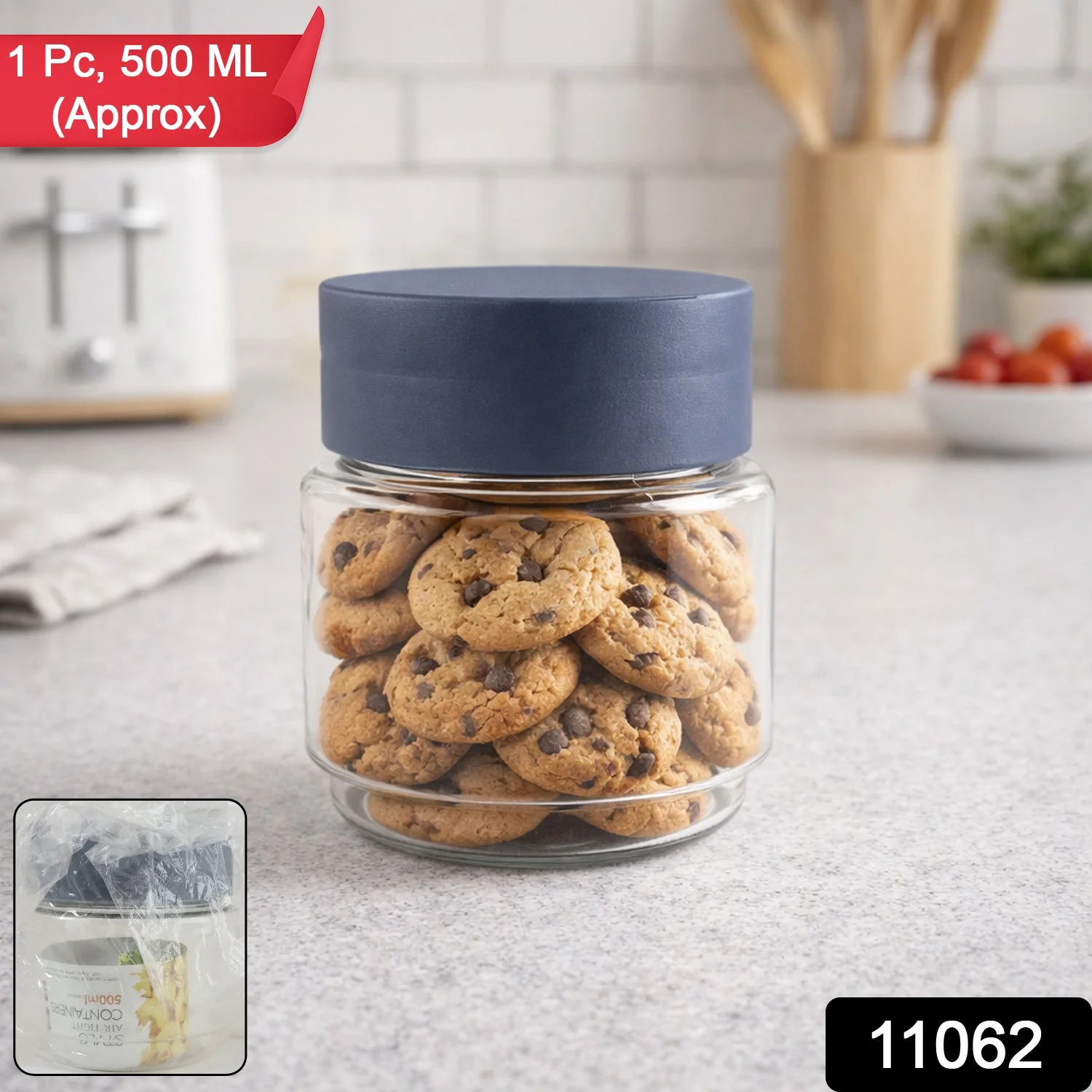 Airtight Transparent Kitchen Storage Jar with Secure Lid for Snacks, Dry Foods, Biscuits, Cookies & Multipurpose Home Organization, Container (1Pc, 500Ml)