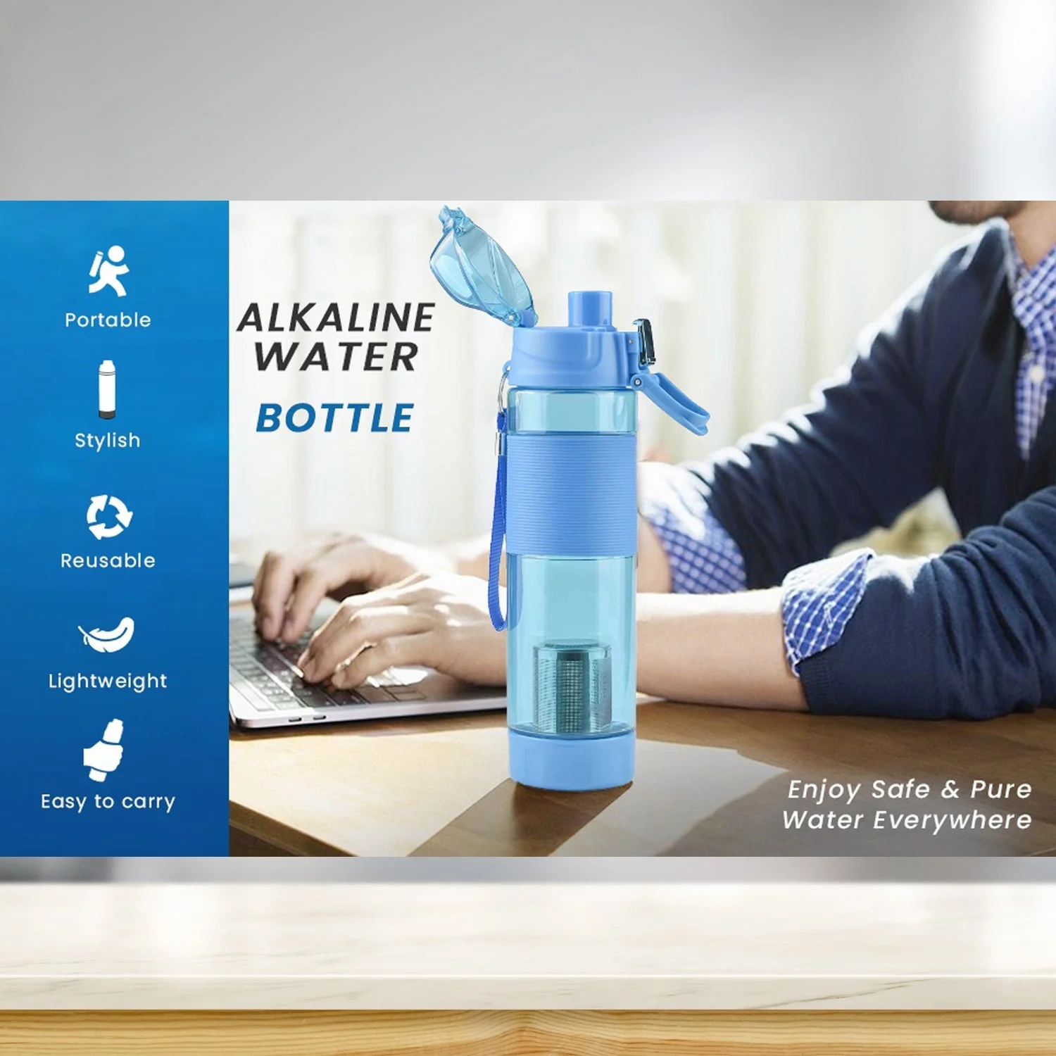 Drinking alkaline water would be a great way to support a healthy lifestyle. The Water Bottle creates alkaline antioxidant water within minutes whenever, wherever. It increases the pH up to 8.5 and reduces the ORP down to -200. This alkaline water bottle absorbed alkaline water more quickly and easily by reducing water cluster sizes.
