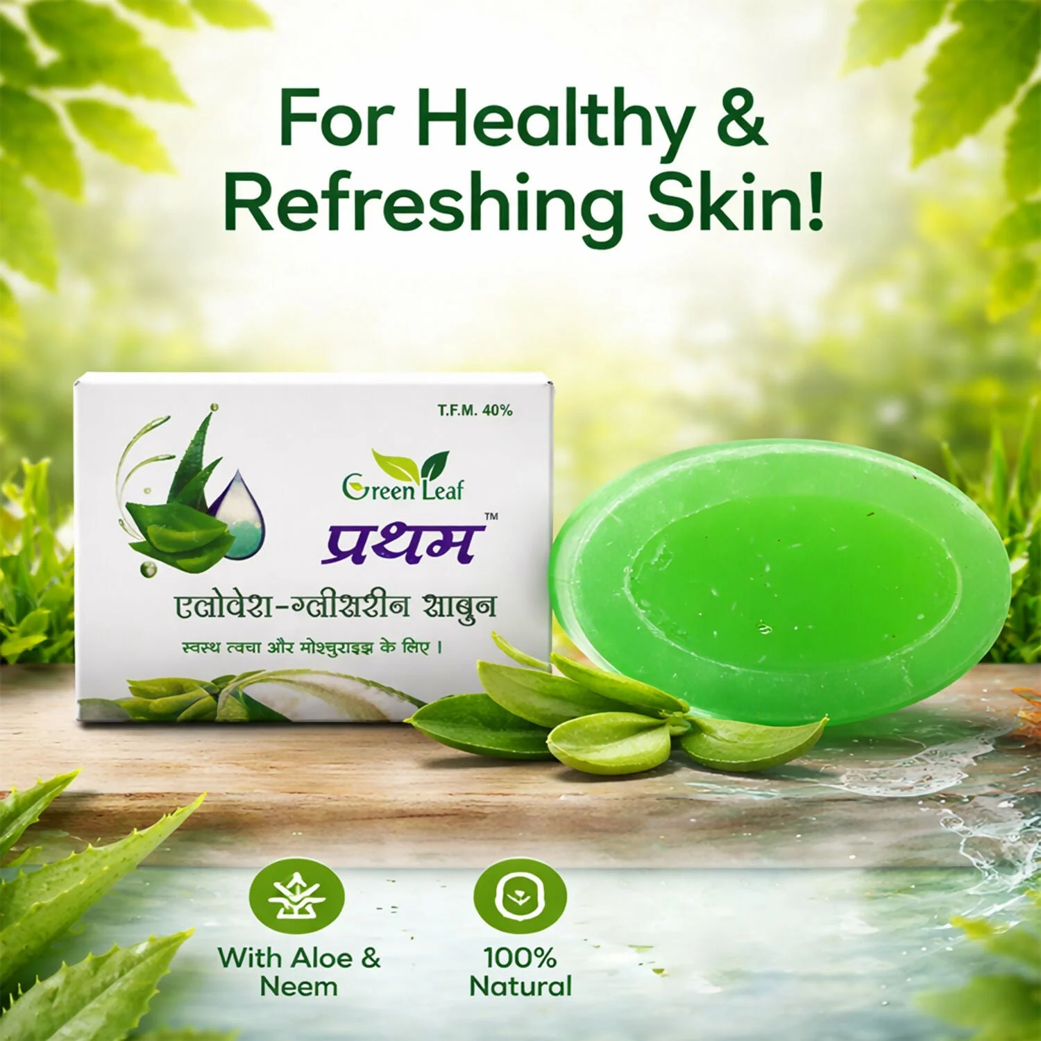 Green Leaf Prathem Aloe Vera Glycerin Soap 75gm is specially formulated to gently cleanse and moisturize the skin. Enriched with the goodness of Aloe Vera and Neem, it helps keep the skin fresh, soft, and hydrated after every wash. The glycerin-based formula supports moisture retention and helps prevent dryness. Suitable for daily bathing, it creates a rich lather that effectively removes dirt and impurities. Ideal for maintaining healthy and refreshed skin for the whole family.