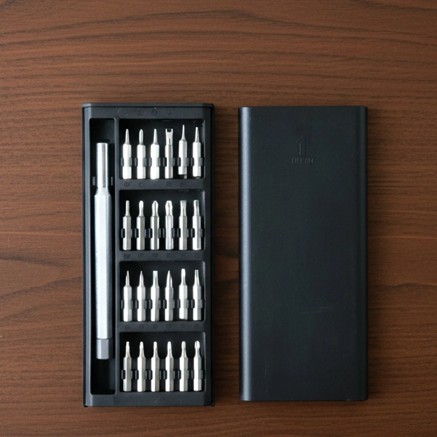 aluminium precision screwdriver set, 24 in 1 screwdriver kit, multiple magnetic bits screwdriver, compact storage case screwdriver, mobile repair screwdriver set, electronics maintenance mini screwdriver, small tool kit for electronics, multi-bit screwdriver set, portable repair tool kit, mini screwdriver kit for phone, tablet and gadget repair, professional precision screwdriver, aluminium hand tool set, magnetic tip screwdriver set