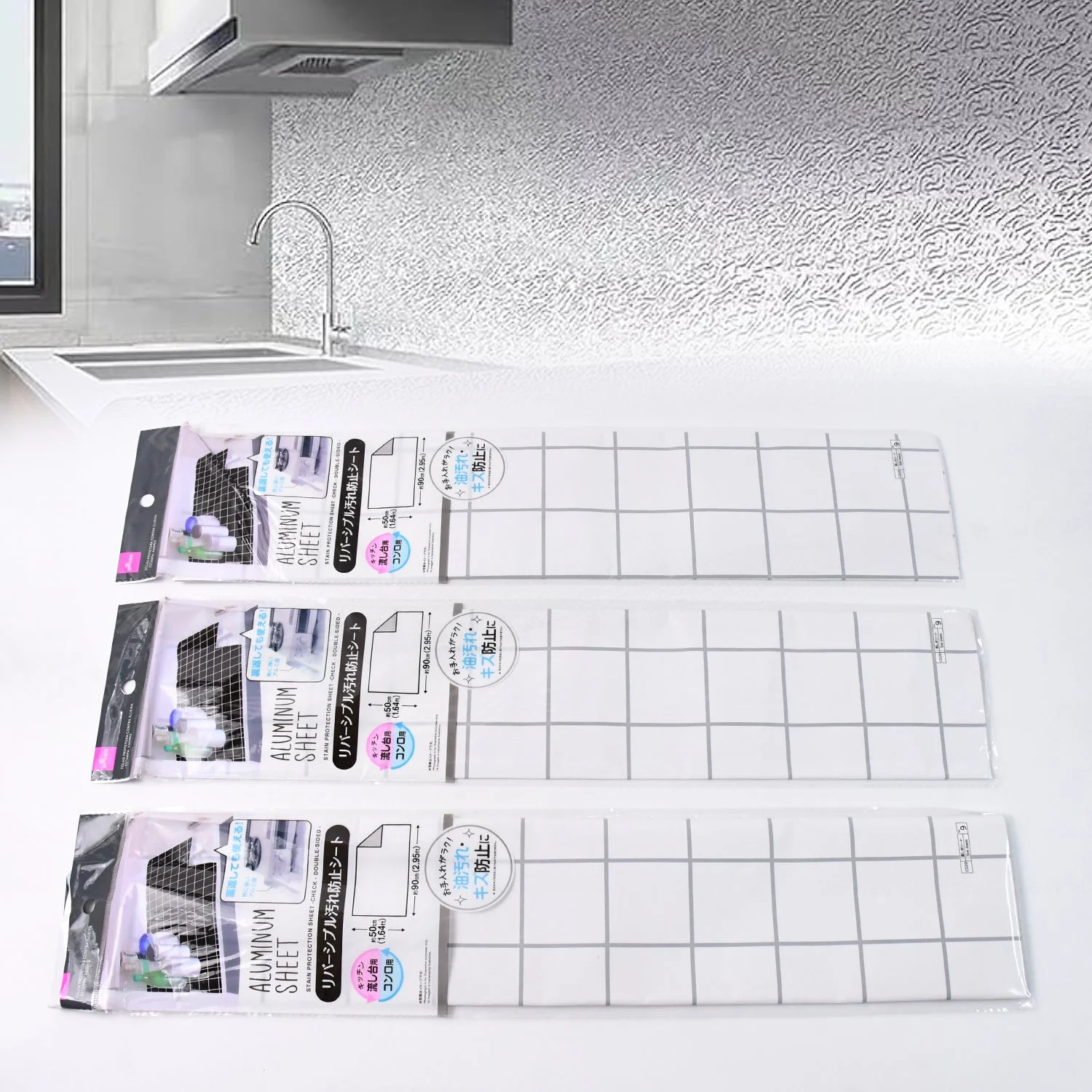 kitchen wall protector , oil splash guard , heat-resistant liner , waterproof liner , stove area protection , shelf liner , cabinet lining , grid pattern sheet , aluminum foil sticker , kitchen aluminum liner , wall sticker protector
