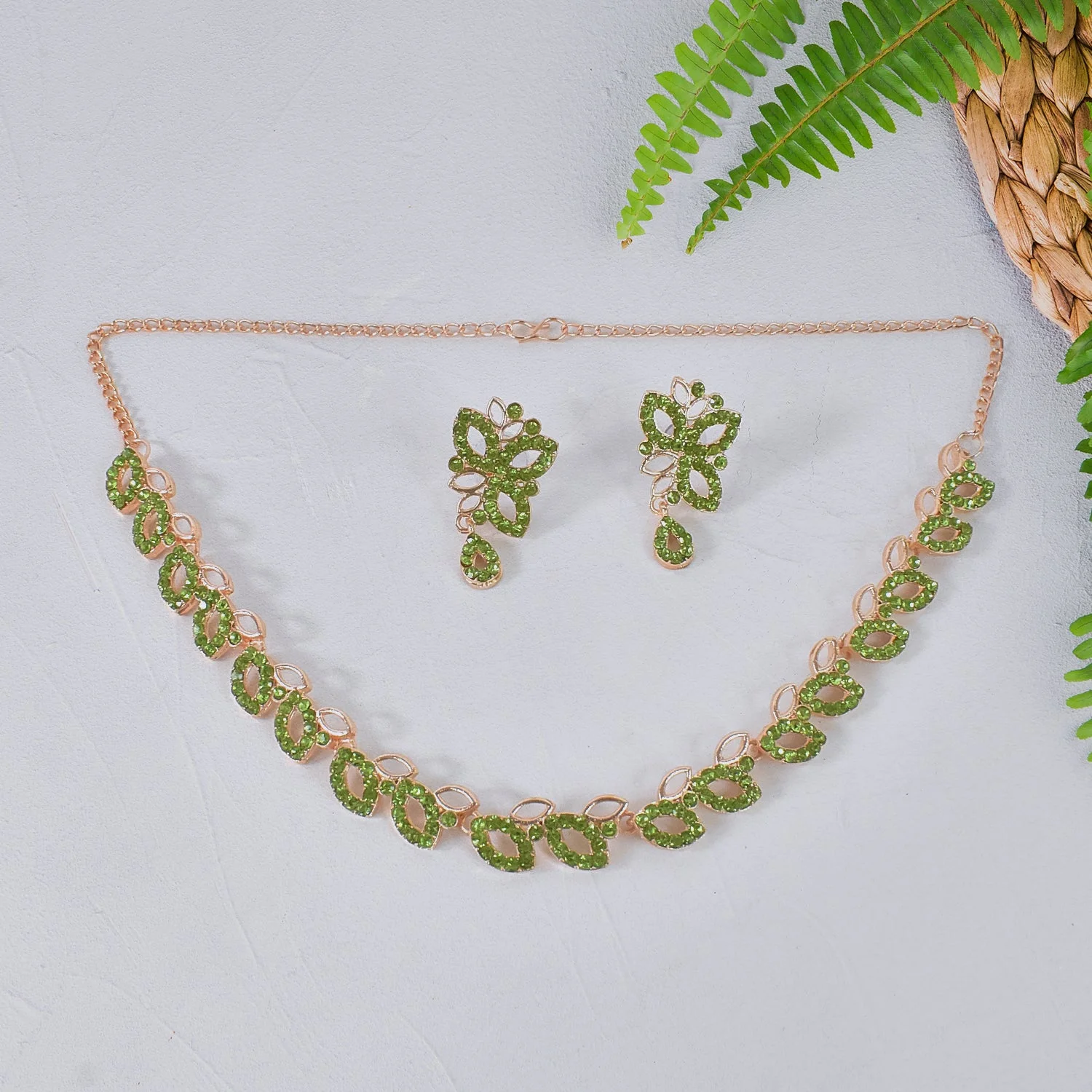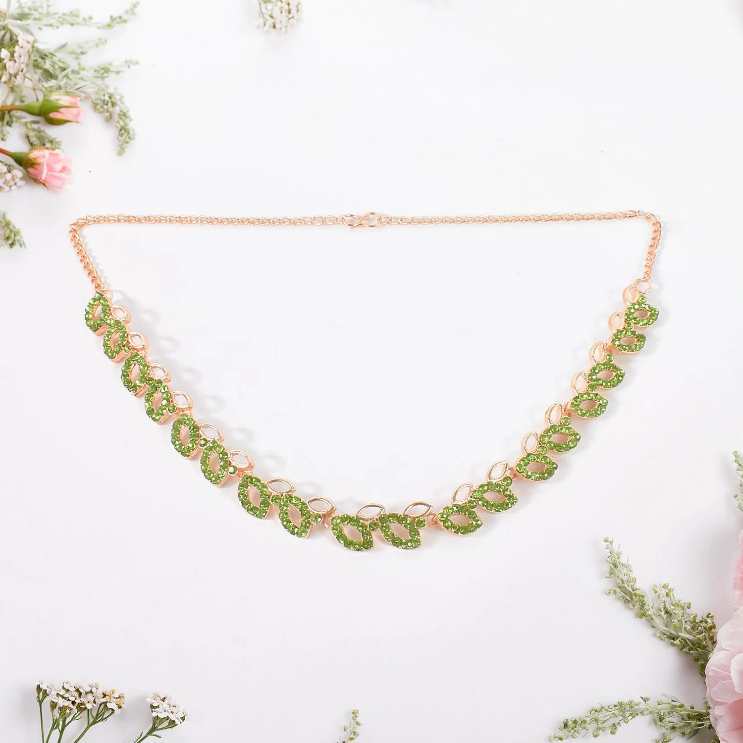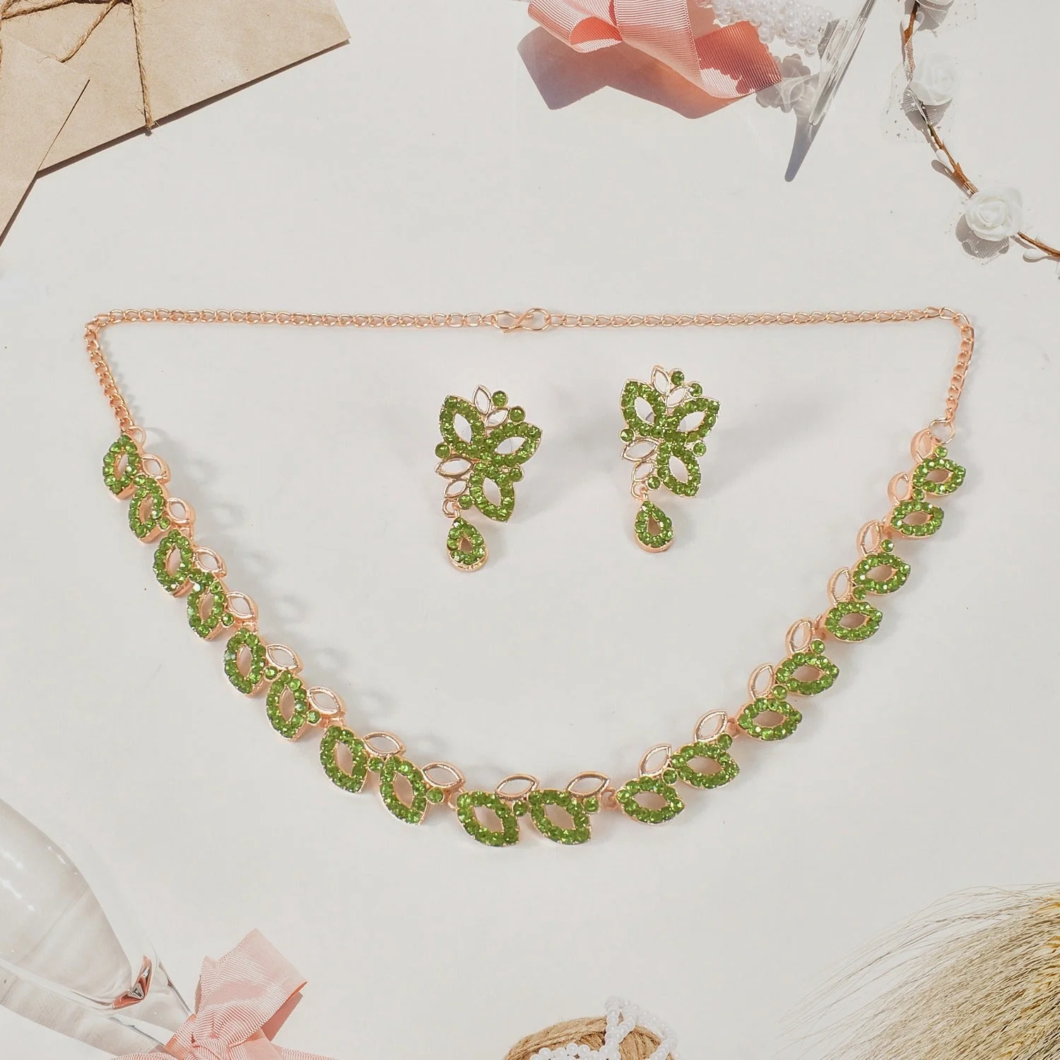 American Diamond Studded Floral Shaped Necklace With Earrings | Lentlo Shop