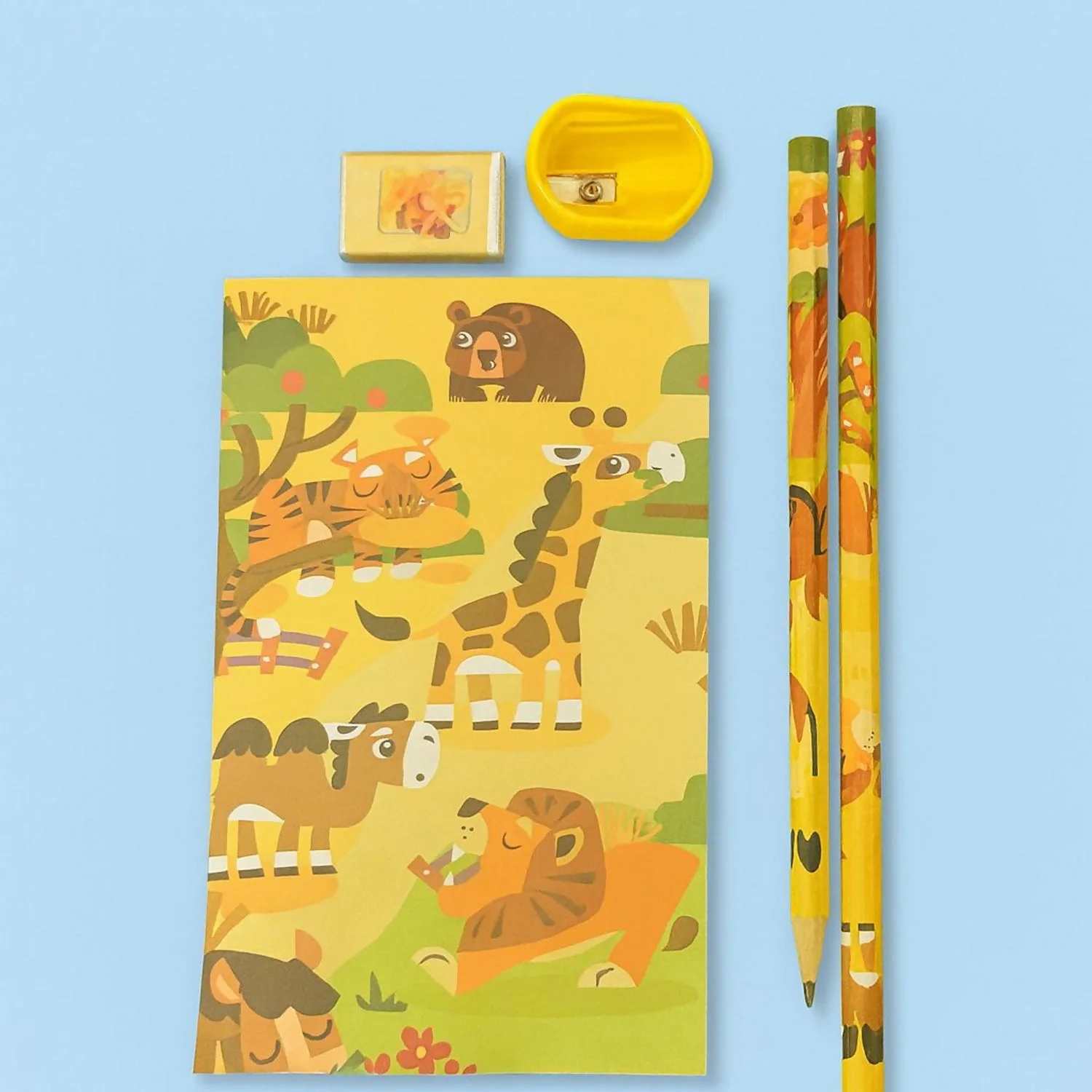 animal stationery set, kids animal stationery, jungle theme stationery, school stationery kit for kids, kids gift stationery set, cartoon notebook pencil set, kids return gift stationery, animal notebook set, school supplies for kids