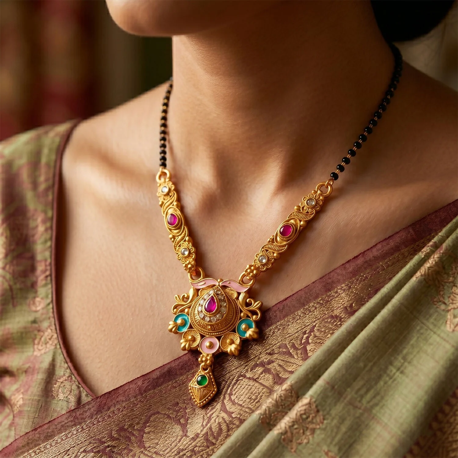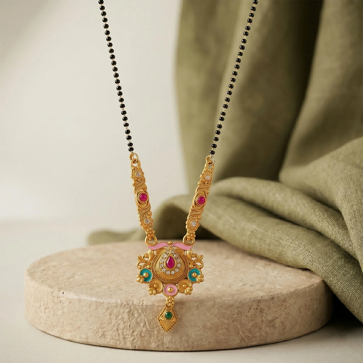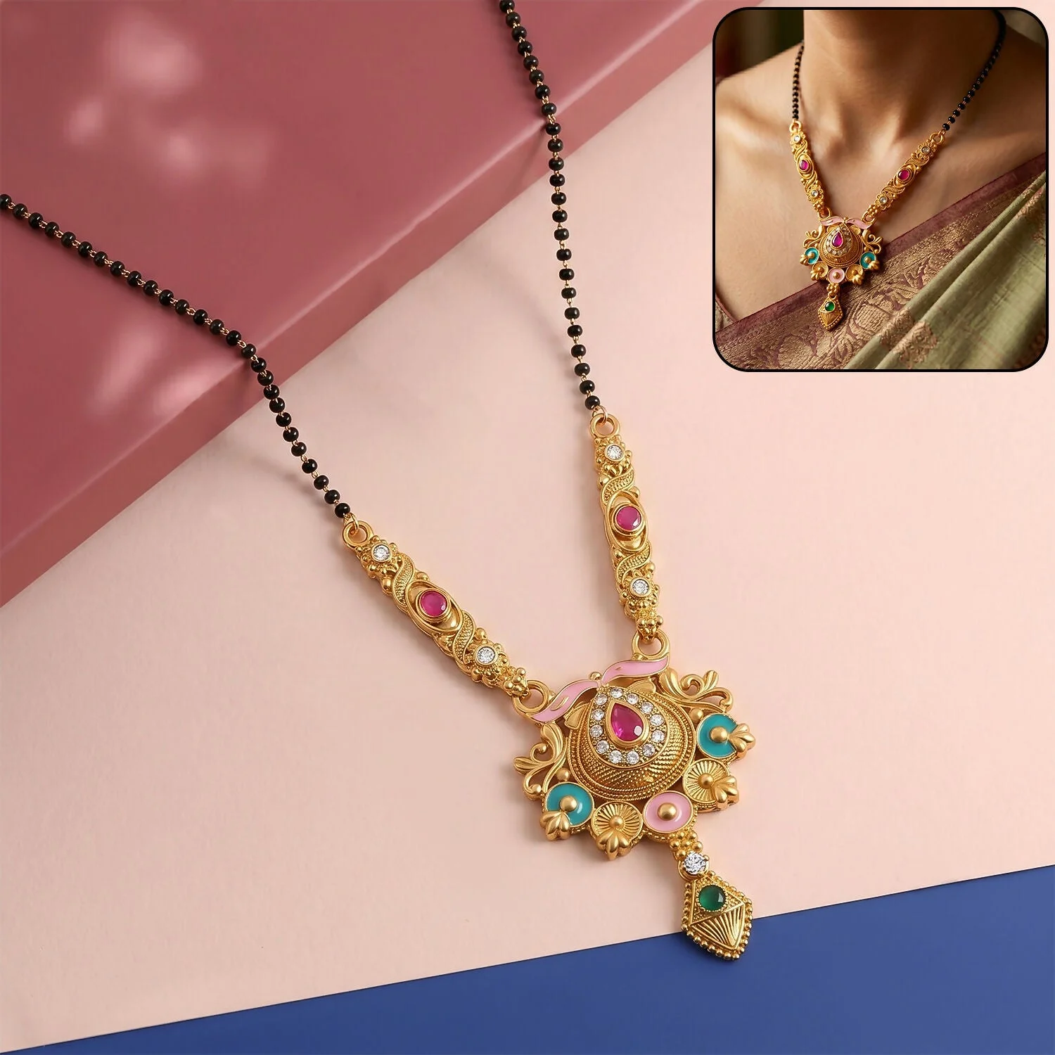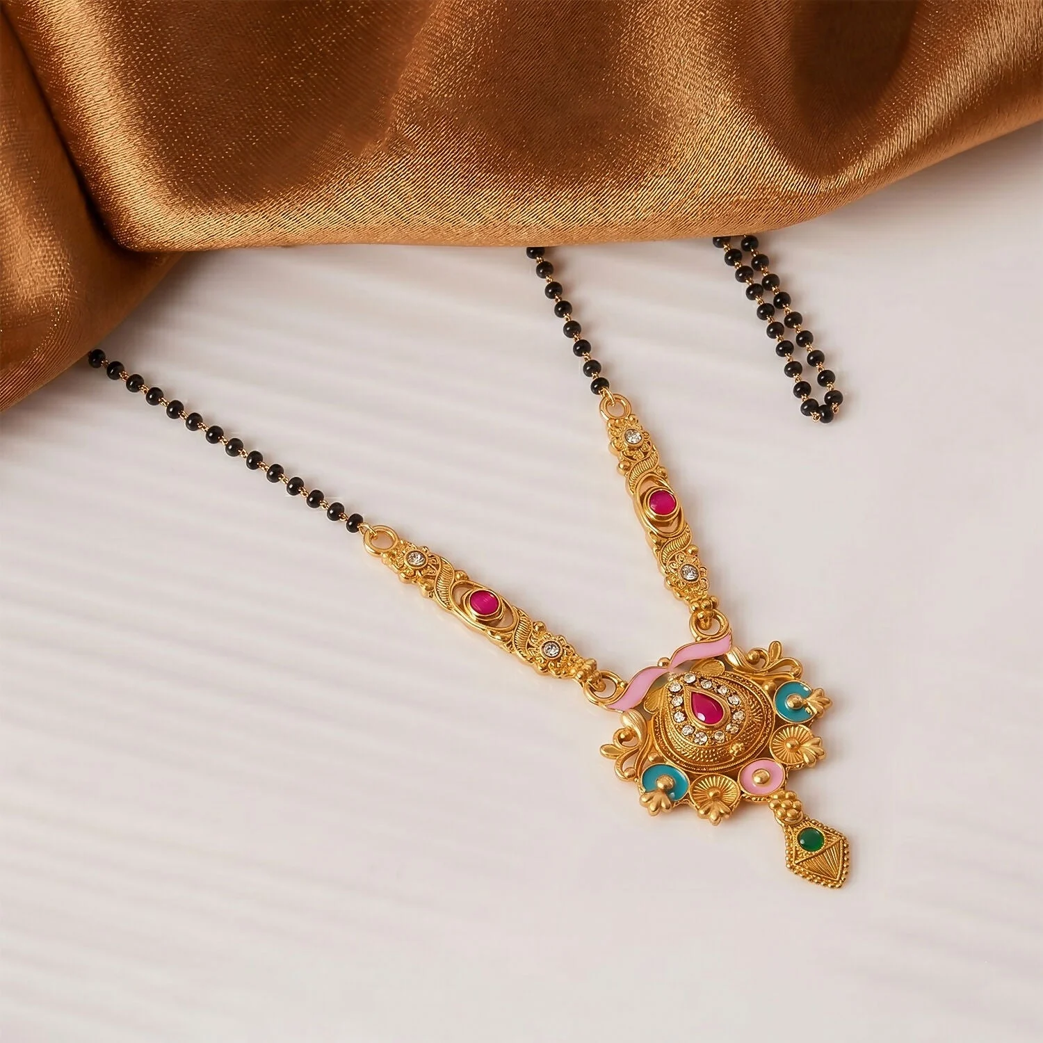 Be the first to review Antique Finish Grand Meenakari Pendant with Teardrop Drop Long Single Strand Mangalsutra!