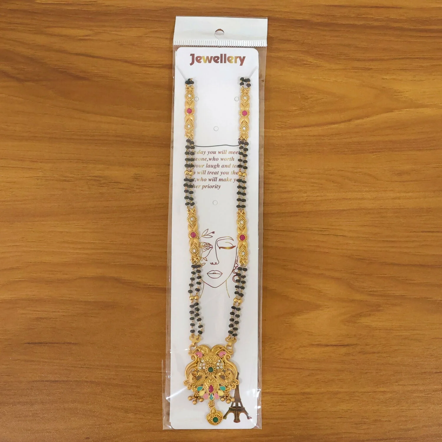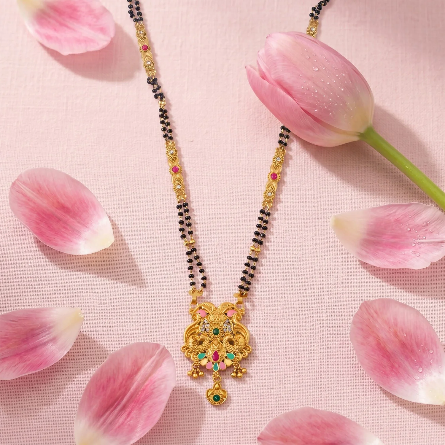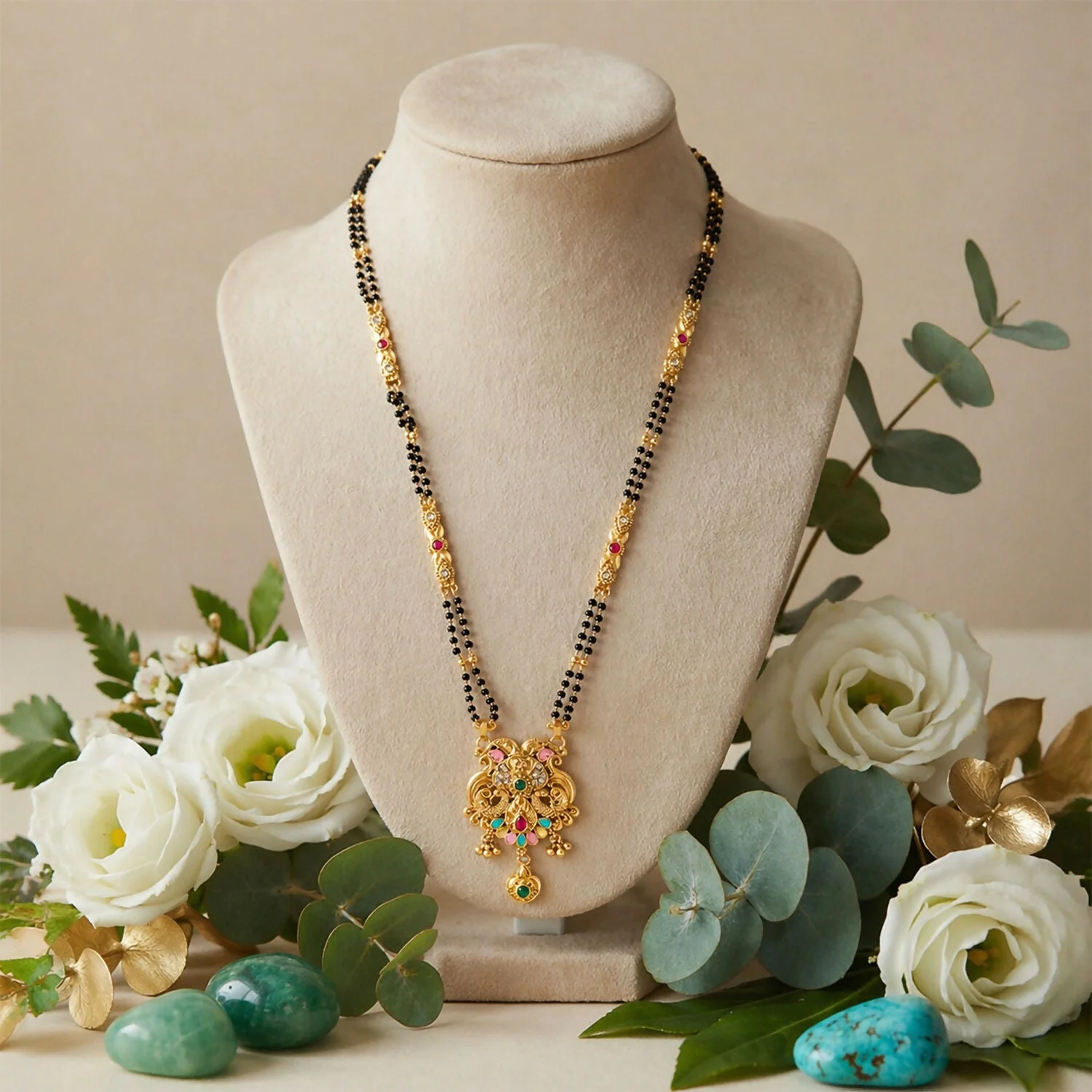 Be the first to review Antique Finish Makara Dragon Scroll Pendant with Fan Enamel Base Long Double Strand Mangalsutra!