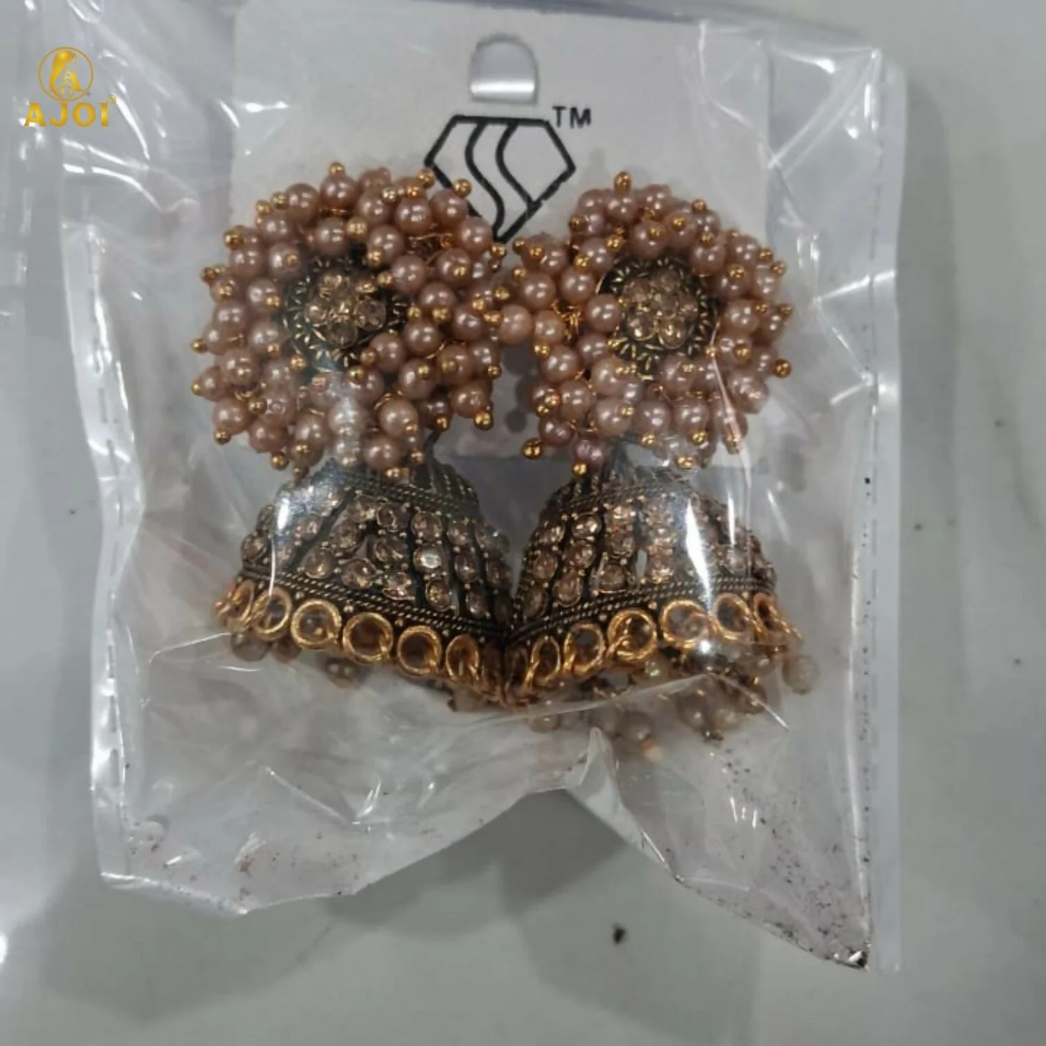 Be the first to review Antique Gold Jhumka Earrings for Women!