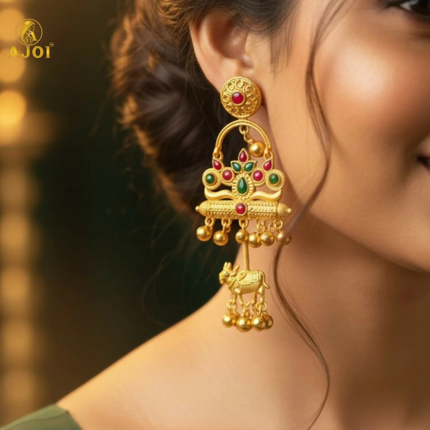 Crafted from premium-quality alloy with an antique gold finish, these earrings are lightweight, durable, and comfortable for long wear. Perfect to pair with sarees, lehengas, handloom outfits, and festive attire, they make a striking statement for weddings, festivals, cultural events, and temple visits.