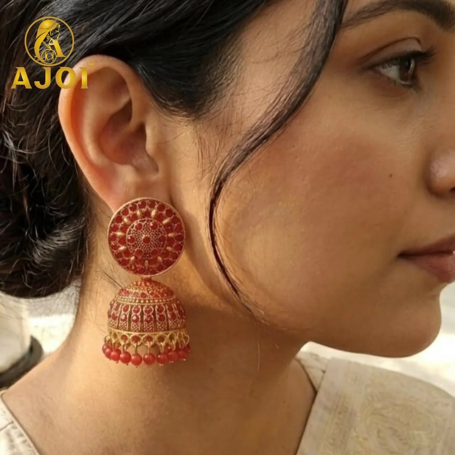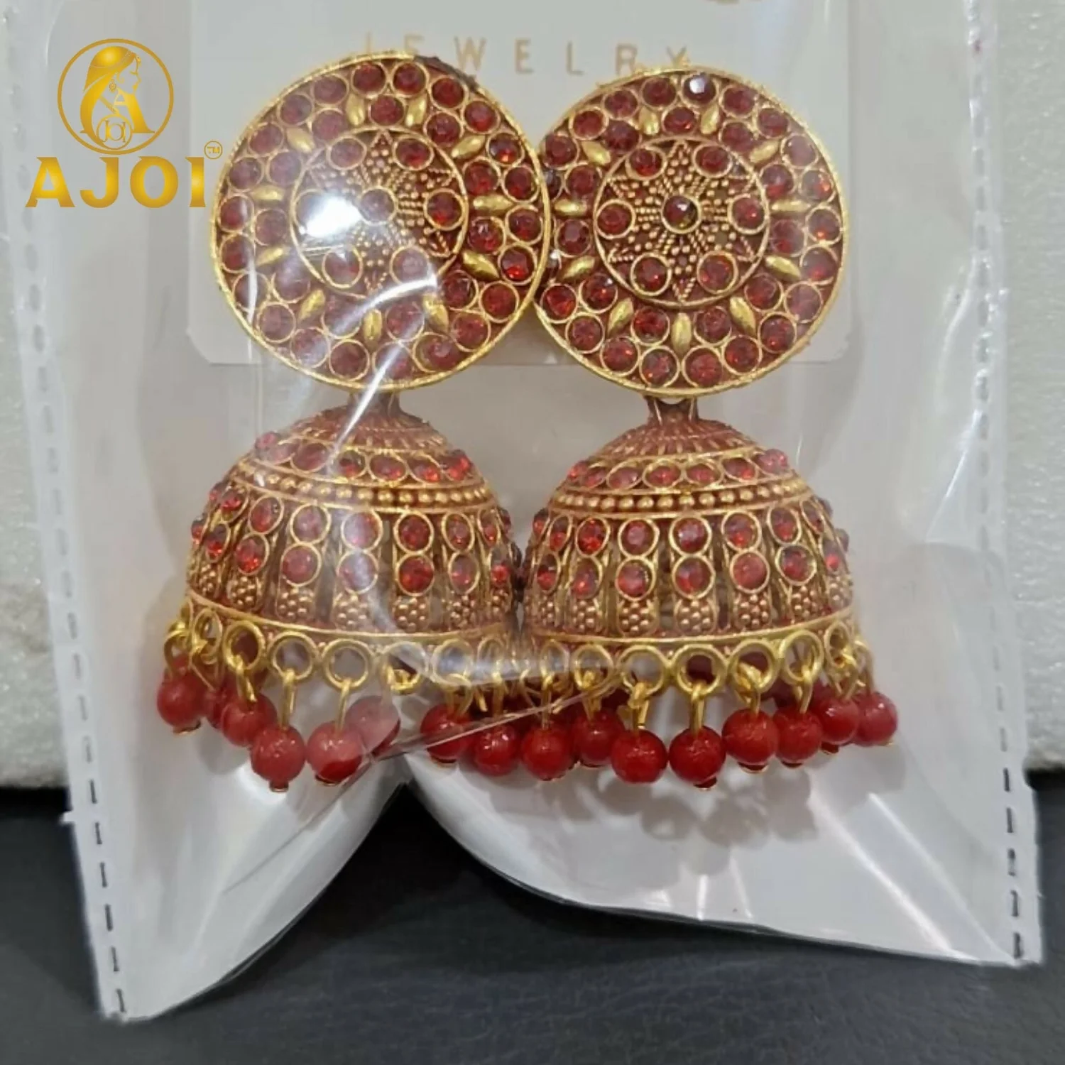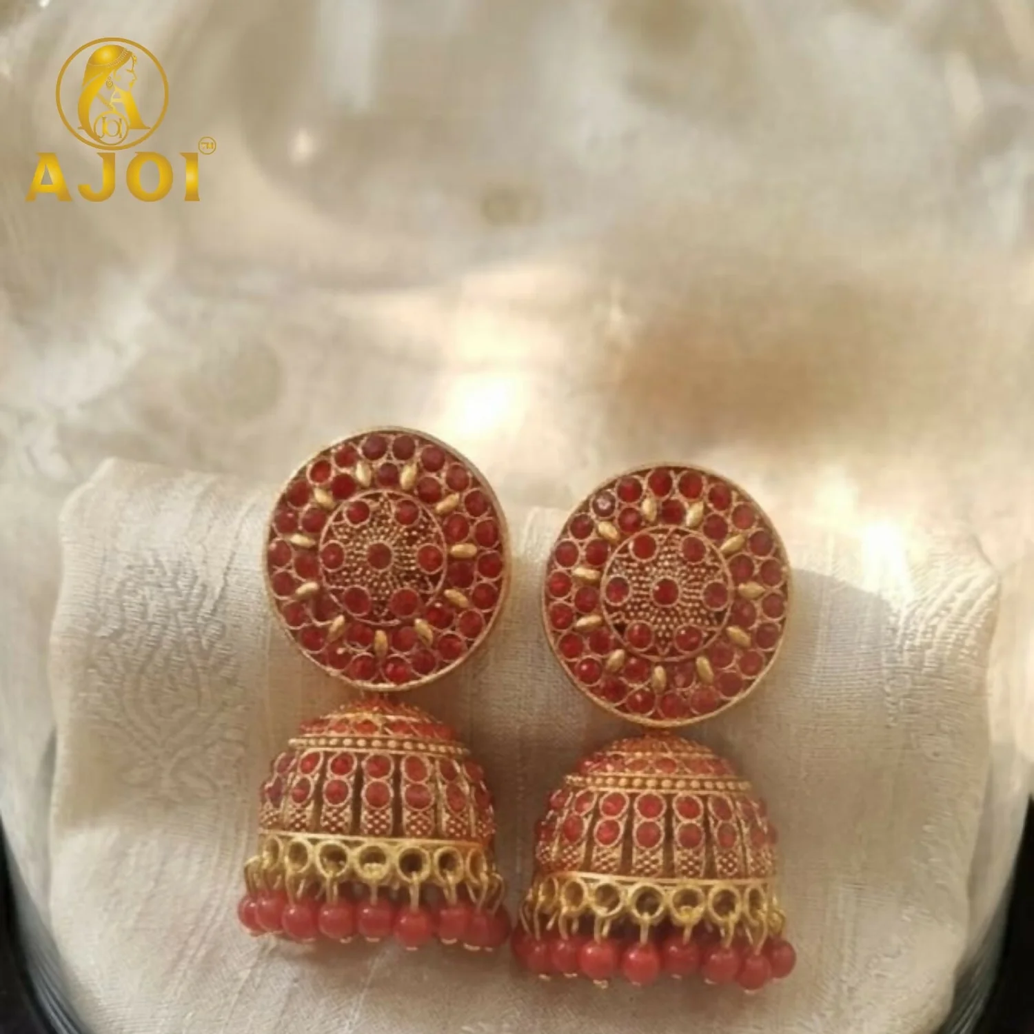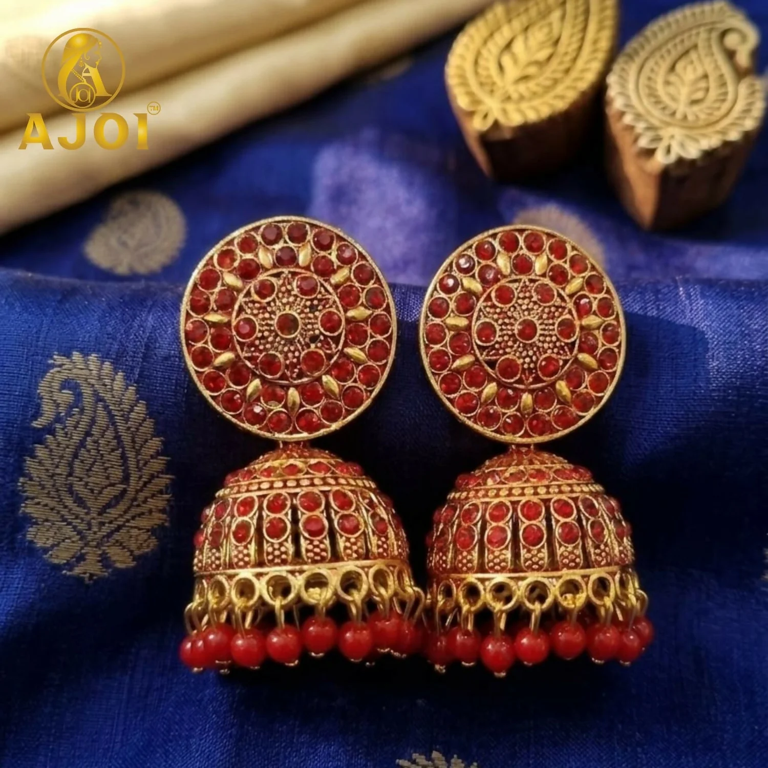 Be the first to review Antique Gold Red Stone Jhumka Earrings Traditional Ethnic Jewelry!