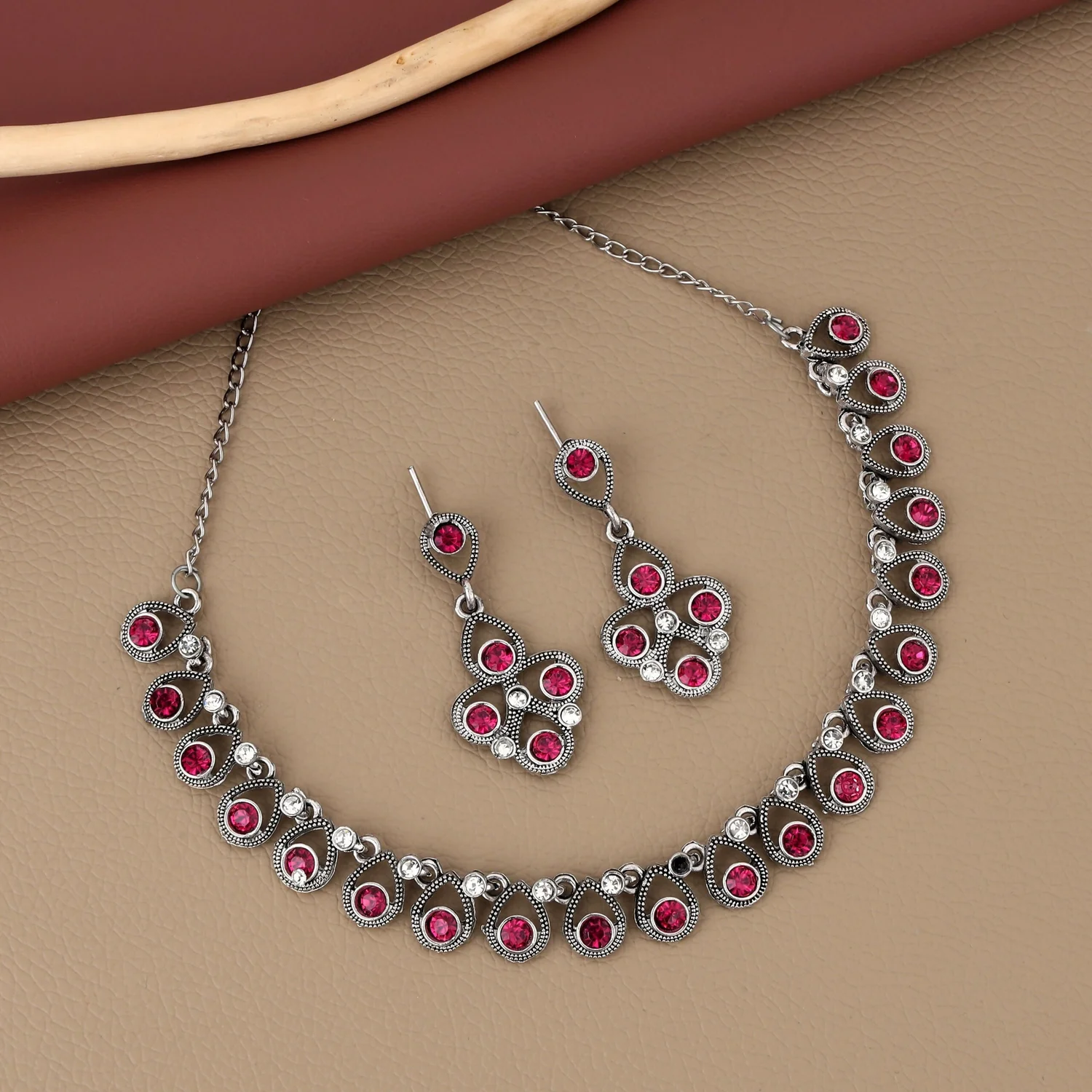 Be the first to review Antique Silver-Toned Choker Set with Fuchsia Pink Stones!