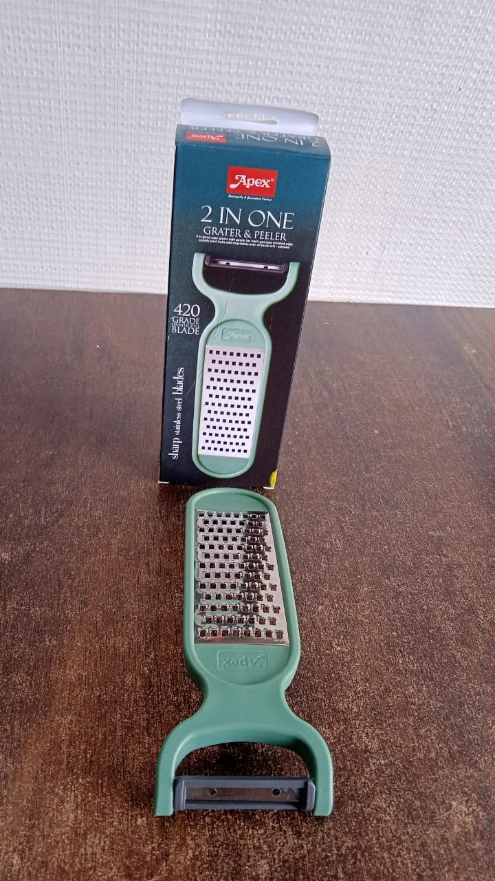 Make your kitchen tasks quicker and easier with the Apex 2-in-1 Grater & Peeler Tool, a uniquely designed multipurpose cutter that combines two essential tools in one smart build. With a sharp stainless steel grating surface on one side and a durable vegetable peeler on the other, this handy tool simplifies your prep work for salads, garnishes, and cooking. Whether it’s shredding cheese, grating vegetables, or peeling carrots and cucumbers, this tool delivers convenience and efficiency with ergonomic control.