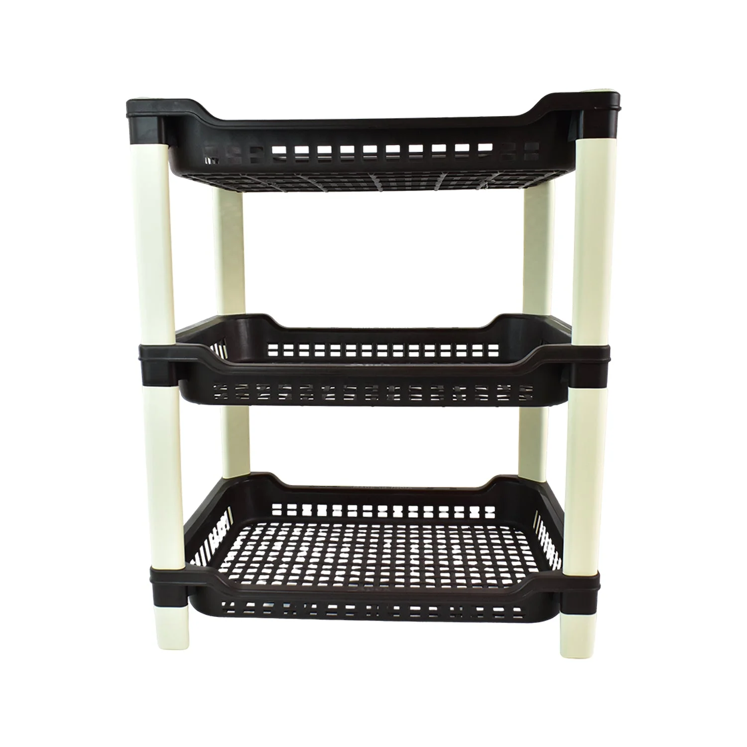 Organize your space efficiently with the Apex Big Multi use Rack, a versatile 3-tier plastic storage unit built for multi-room utility. Whether used in the kitchen, bathroom, living room, or office, this durable rack helps store items neatly and accessibly. Made from high-quality plastic, each tier is designed with a ventilated, grid-style base to allow airflow and prevent moisture buildup. The structure is easy to assemble without any tools, and the neutral colors blend easily with any décor. Its open design provides quick visibility and reach, making it ideal for storing toiletries, vegetables, books, cleaning items, or office supplies.