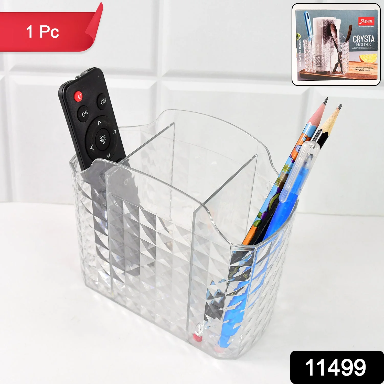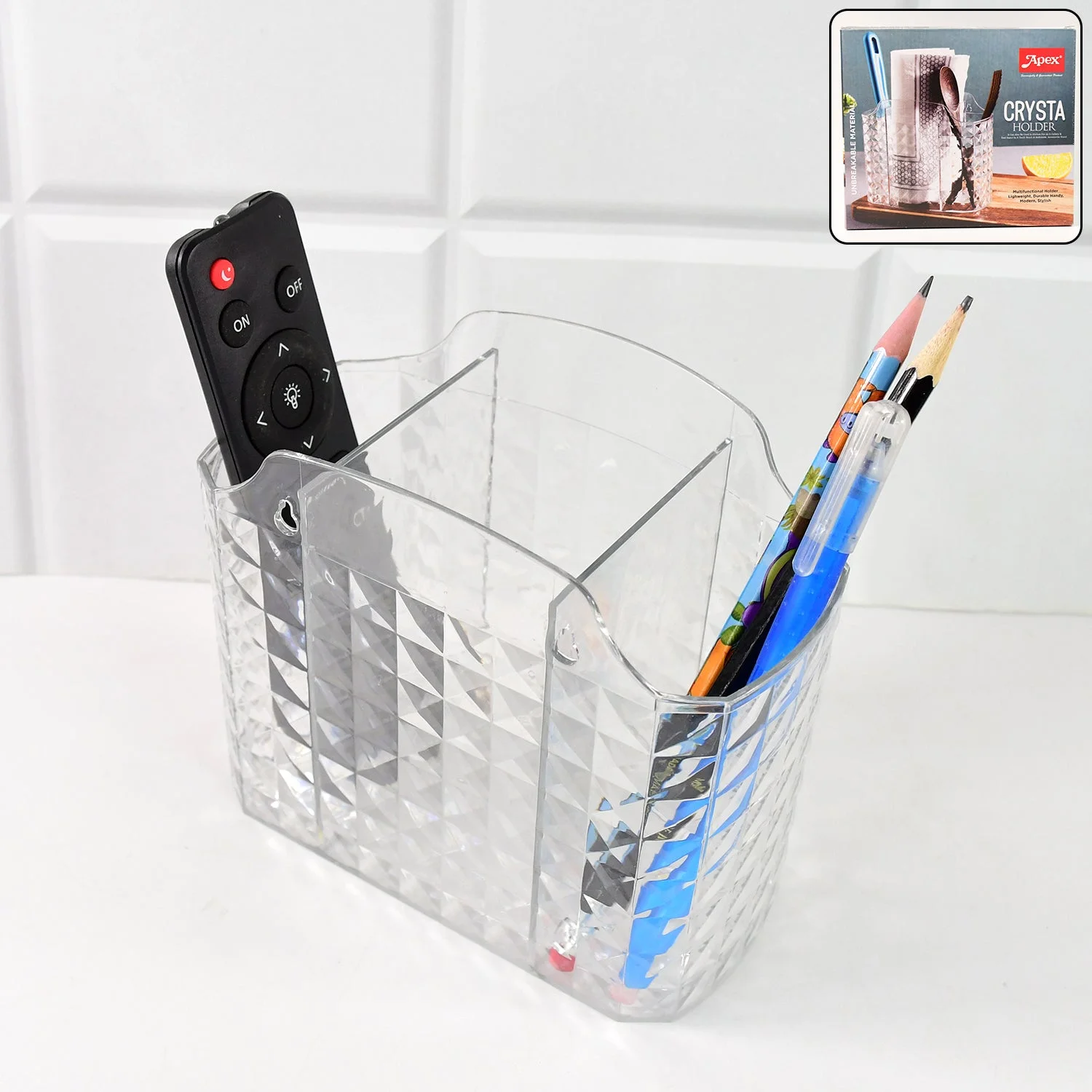 Crysta Multipurpose Organizer Holder – Unbreakable Clear Plastic Storage Caddy for Kitchen, Office, and Bathroom | Stylish & Durable Cutlery, Tool, Toothbrush & Accessory Stand (1 Pc)
