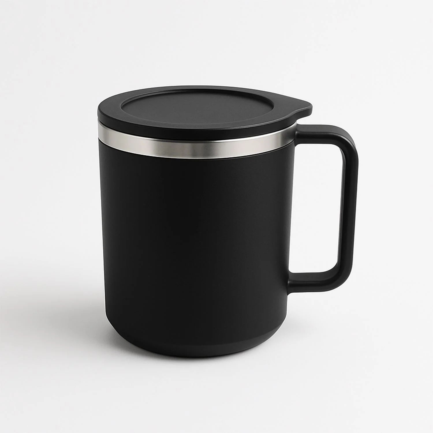 The Apex Happy Mug with 400 ml capacity is the perfect companion for your daily tea or coffee ritual. Designed with a sleek black matte finish and equipped with a soft silicone lid, this mug ensures both style and function. Its stainless steel inner lining offers excellent thermal insulation, keeping your beverage hot or cold longer. Ideal for busy professionals and comfort-seekers alike, this mug combines convenience, durability, and aesthetics in a single package.