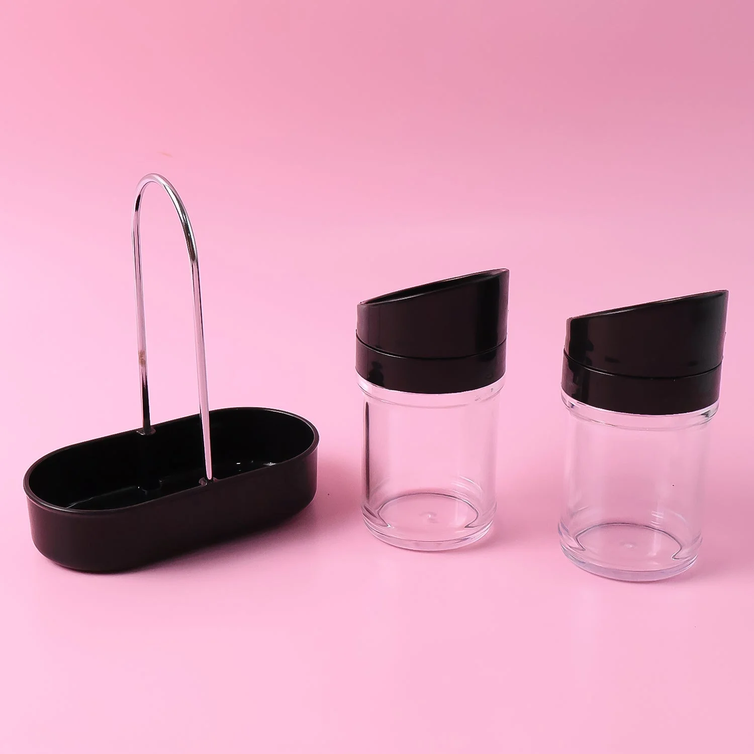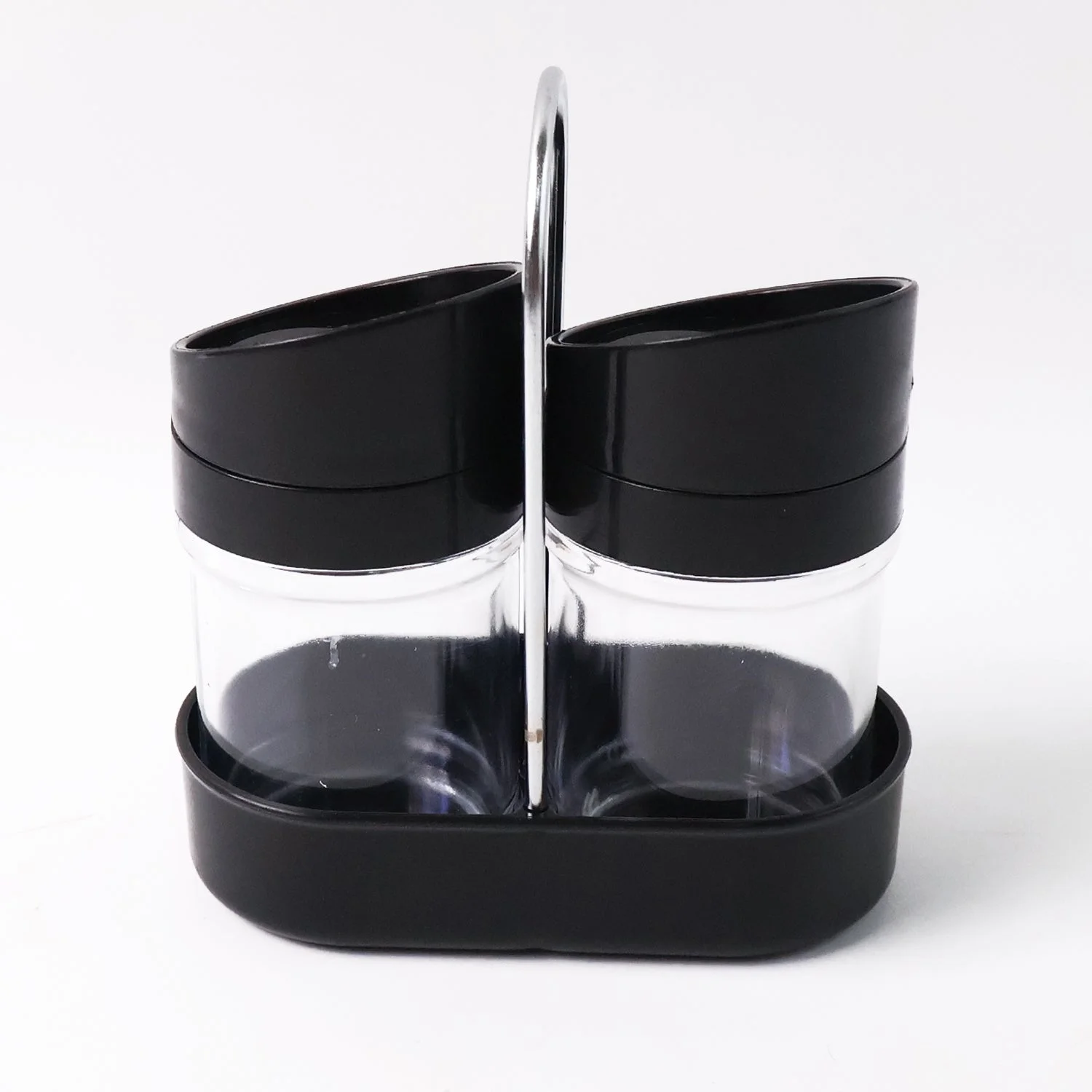 spice jar set, seasoning container, salt and pepper holder, masala storage jar,dual spice dispenser, spice organizer,kitchen storage, dining table accessory,restaurant tableware,black lid spice jars,modern spice container