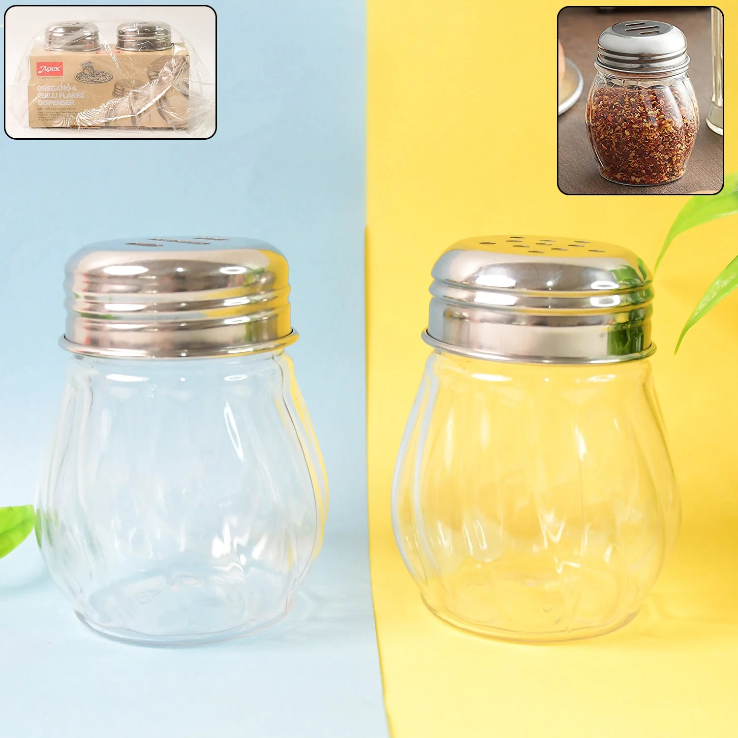 Be the first to review Apex Oregano & Chilli Flakes Dispenser Set 2 Pcs Plastic Spice Shaker with Steel Lid!