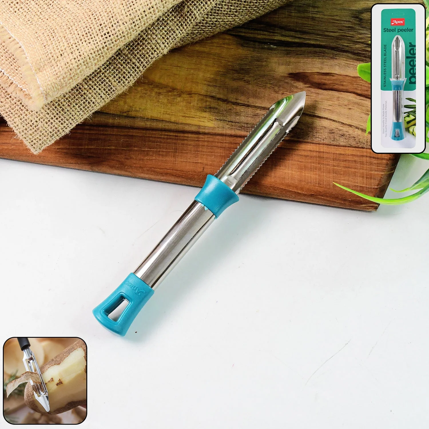 Apex Premium Stainless Steel Vegetable & Fruit Peeler with Ergonomic Handle | Multipurpose Kitchen Peeler for Potatoes, Carrots, Cucumbers & More | Sharp Blade for Effortless Peeling – Durable Kitchen Tool (1 Pc)