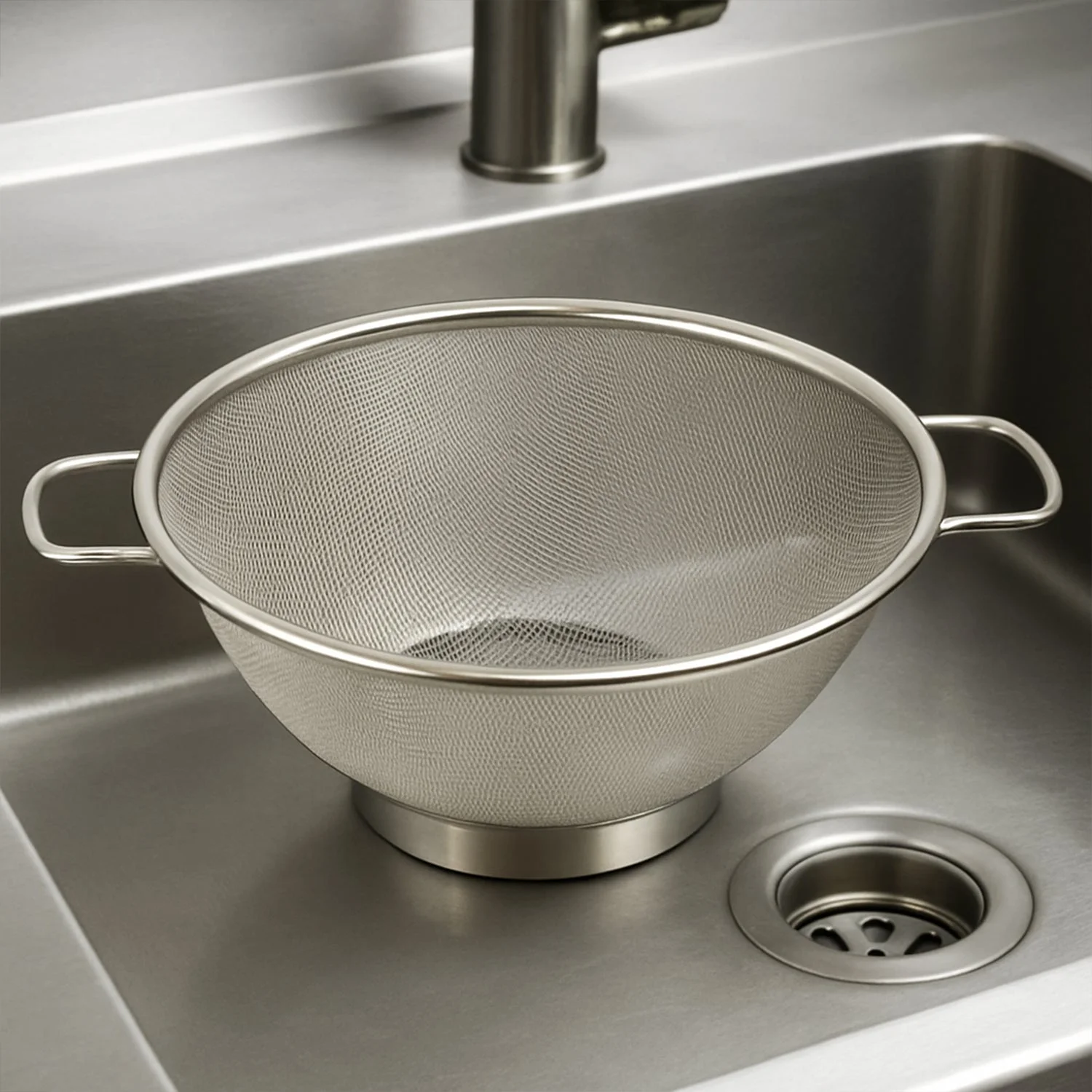 Fine Mesh Woven Design: Ideal for draining small grains, pasta, fruits, and vegetables without spillage.